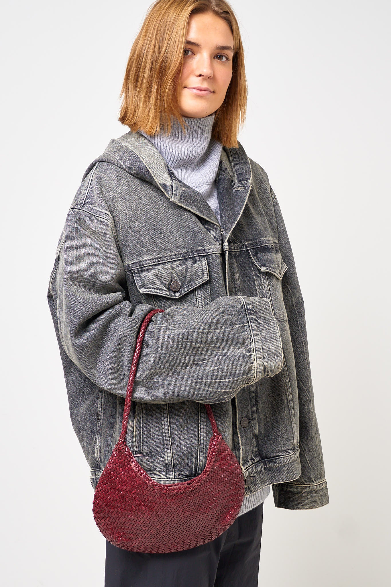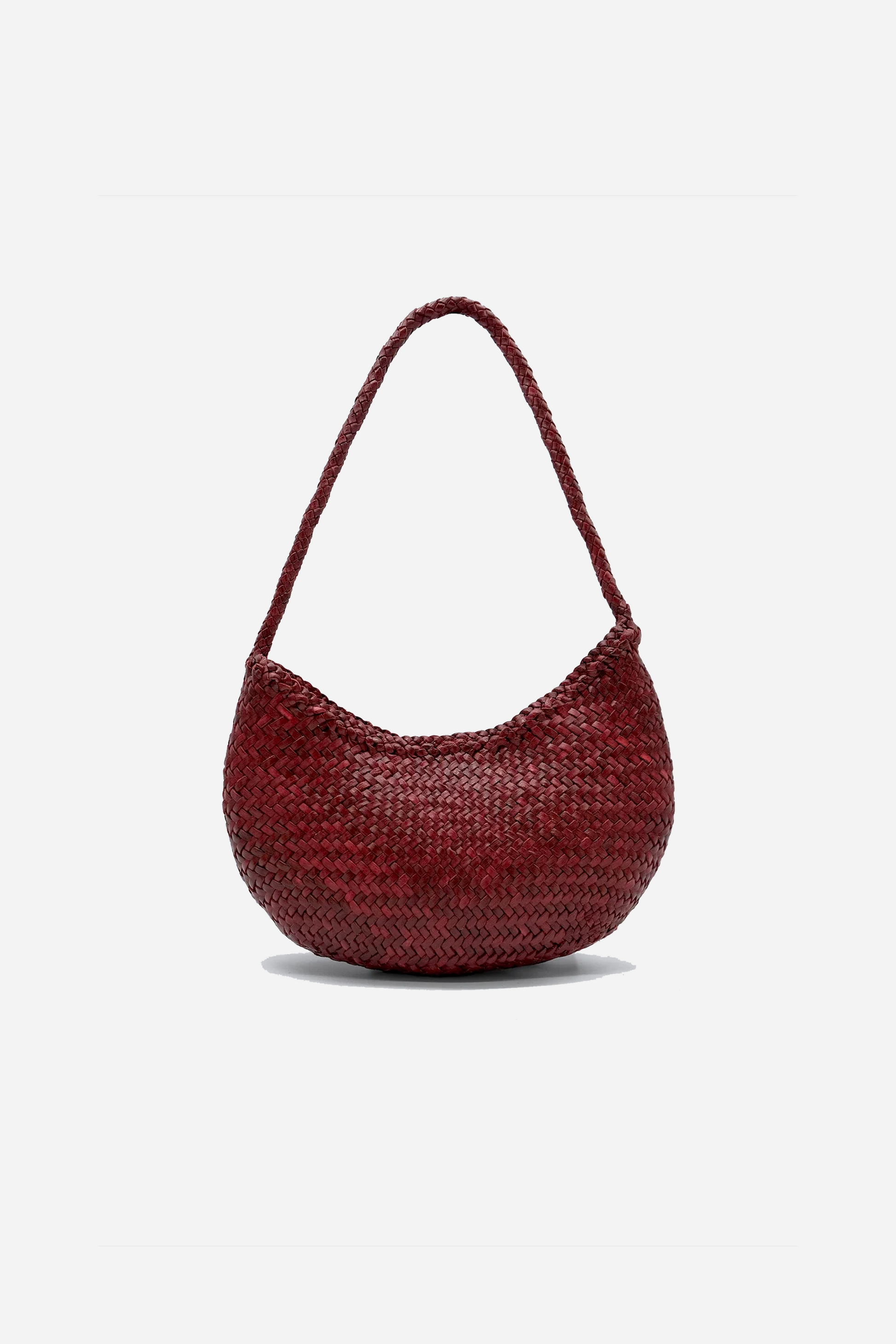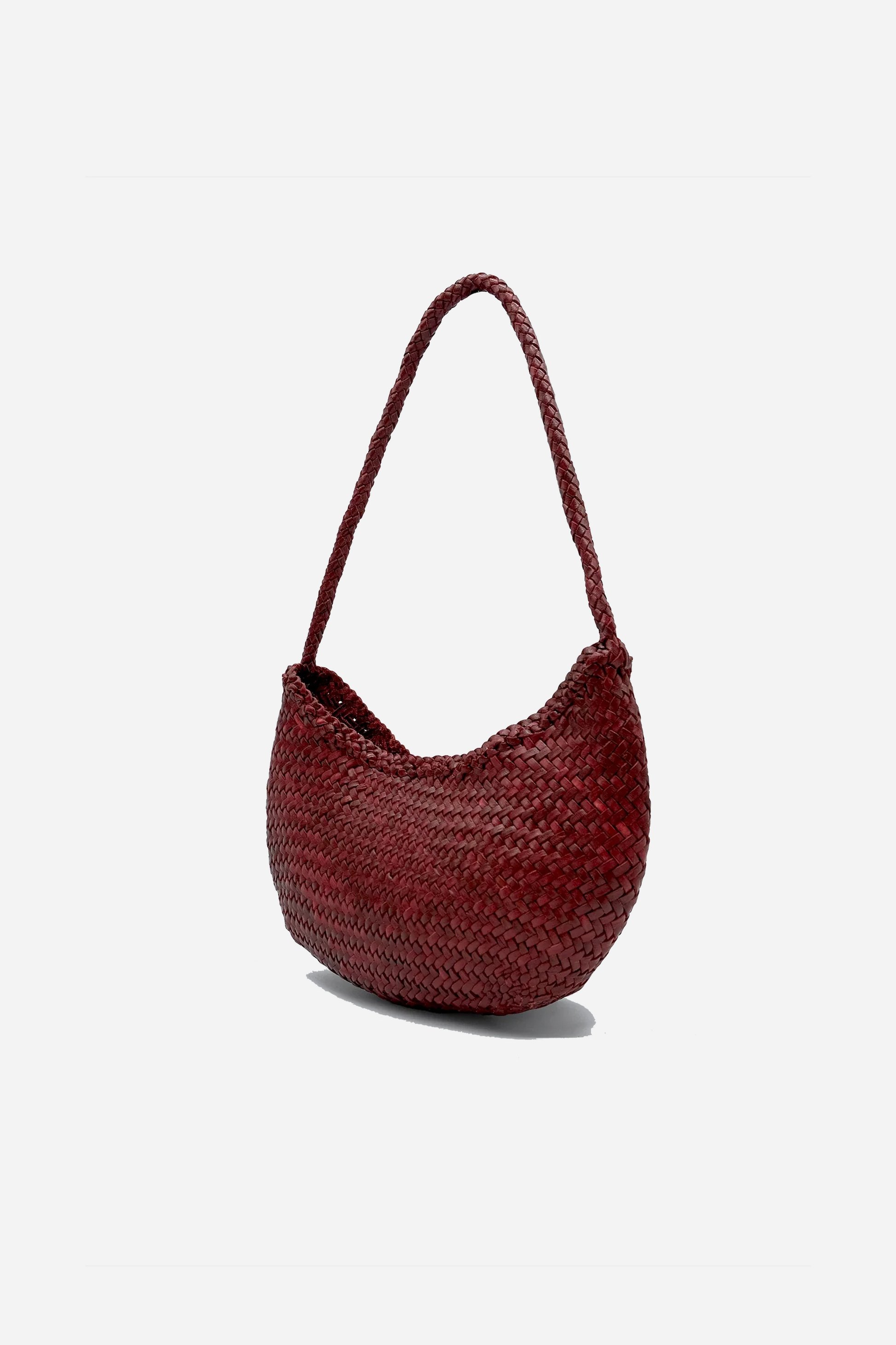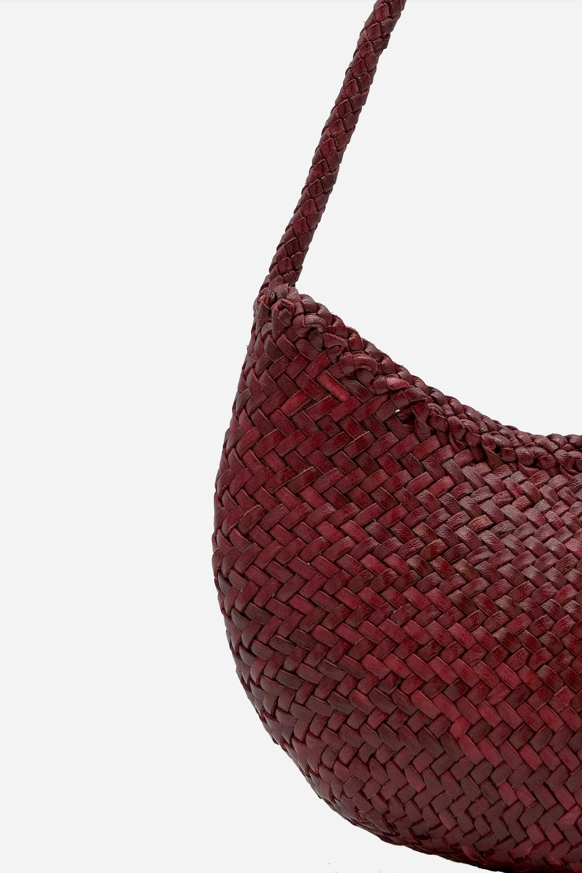 Nova Luna Bordo from Dragon Diffusion. This bag is handmade in India and is designed in braided leather. The bag has an interior compartment, a pendant and a single strap.