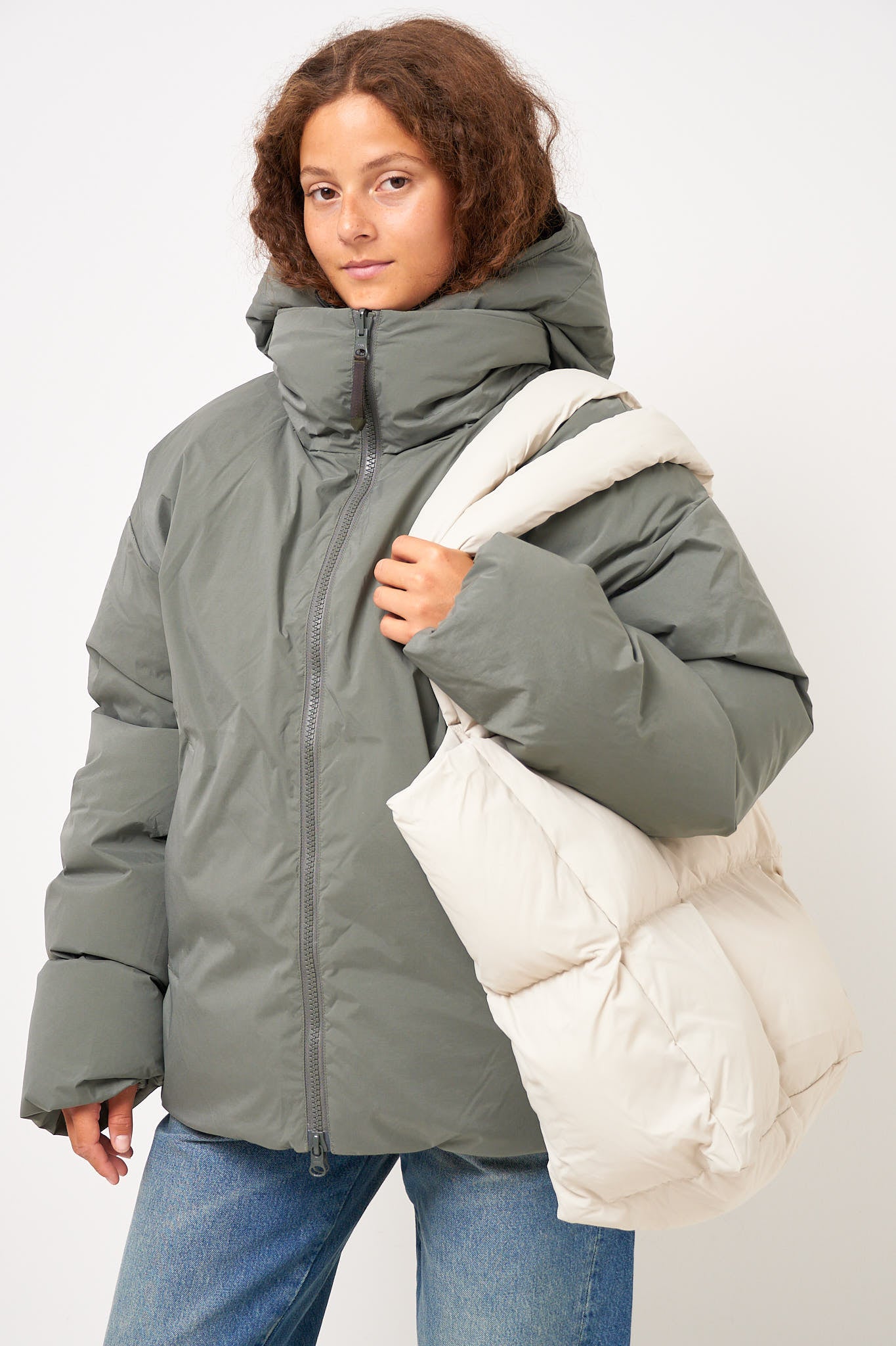 Dyngja Puffy Tote Bag Dark Stone