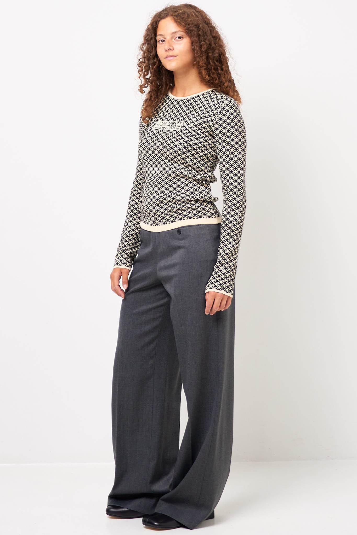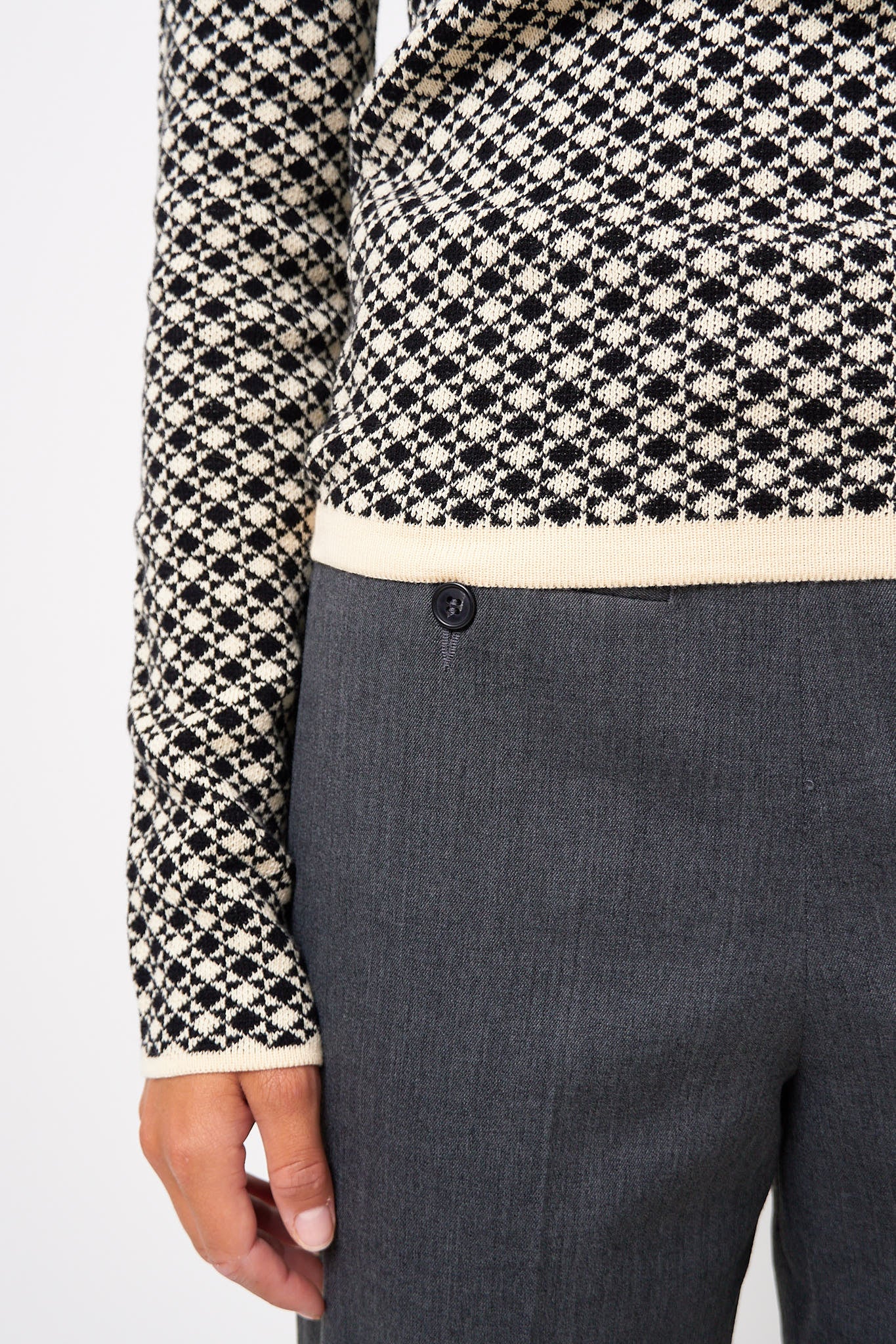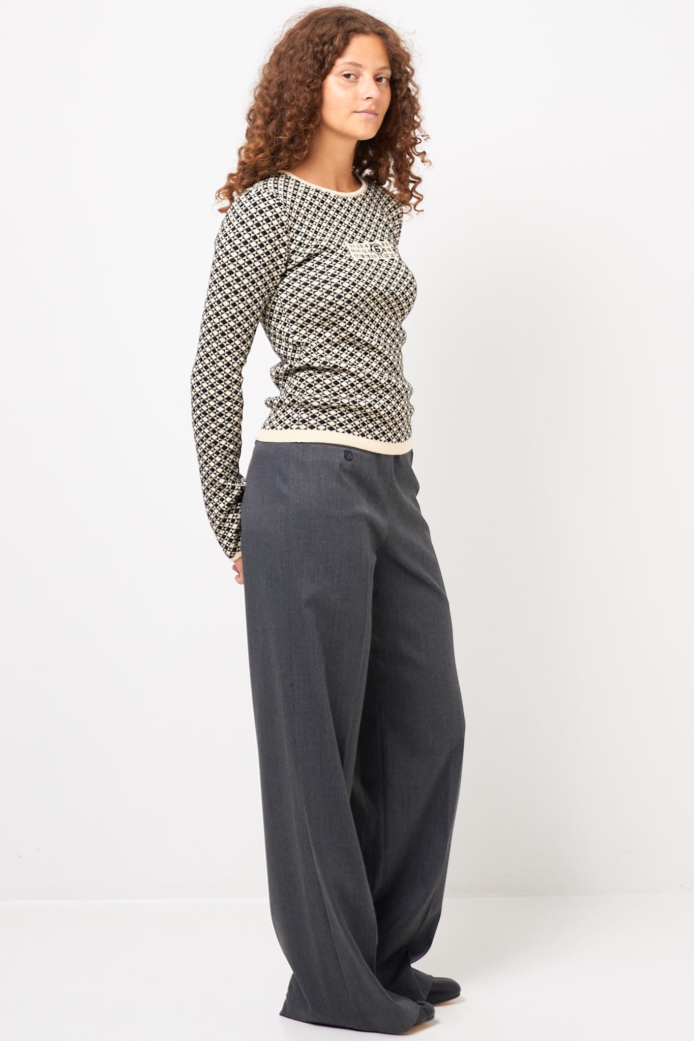 Check Crewneck Black/White from MM6 Maison Margiela. This knit is made of a heavy cotton. It is designed with a jacquard pattern, and has ribbed edges with elastic. The knit has an MM6 Maison Margiela logo on the chest.