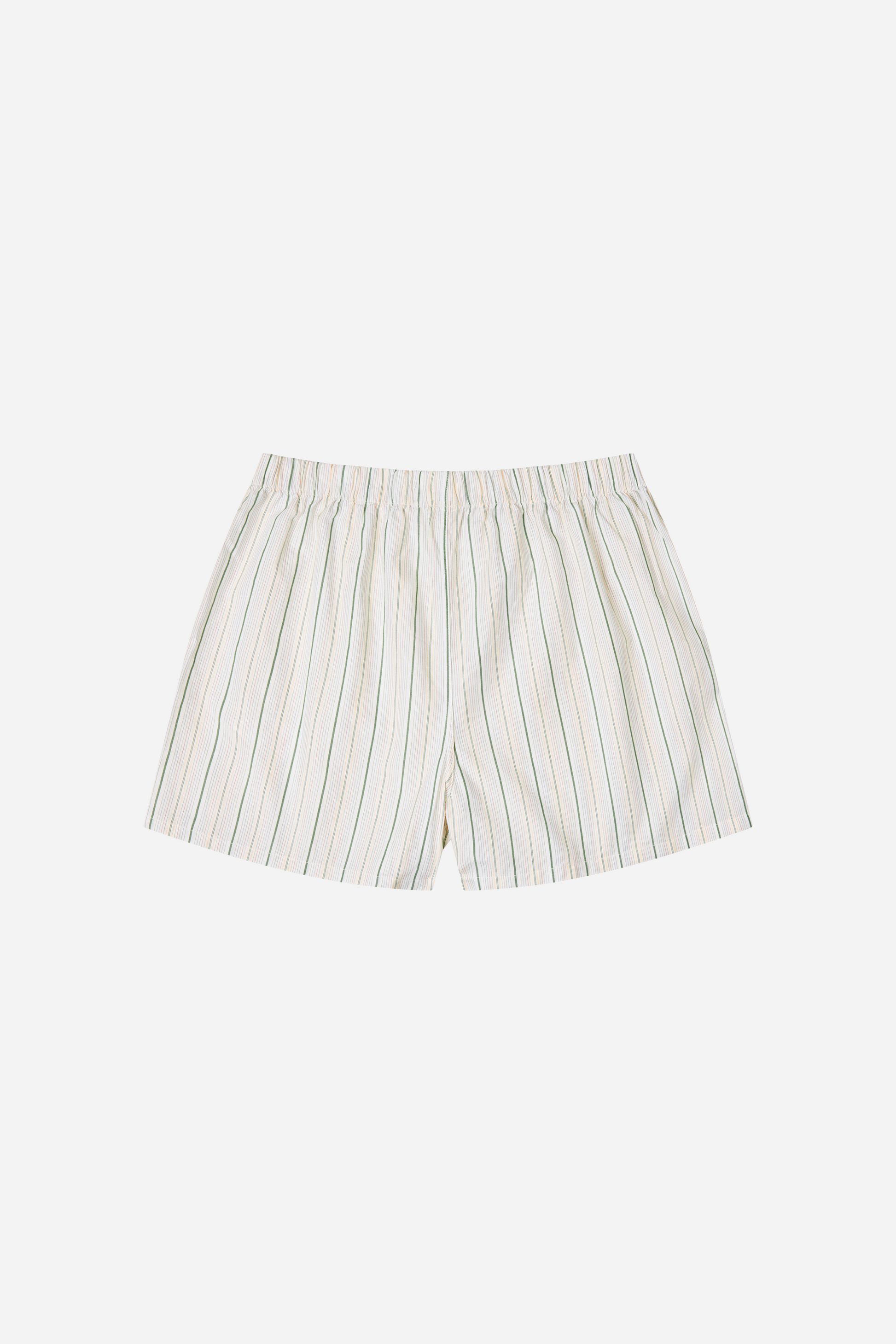 Green Rainbow Stripe Boxers from Fichi. These boxer shorts are made of cotton. They are designed with elastic waist and buttons at the front. These boxers have an embroidered Fichi logo at the front. The boxers come in a bag in the same fabric.