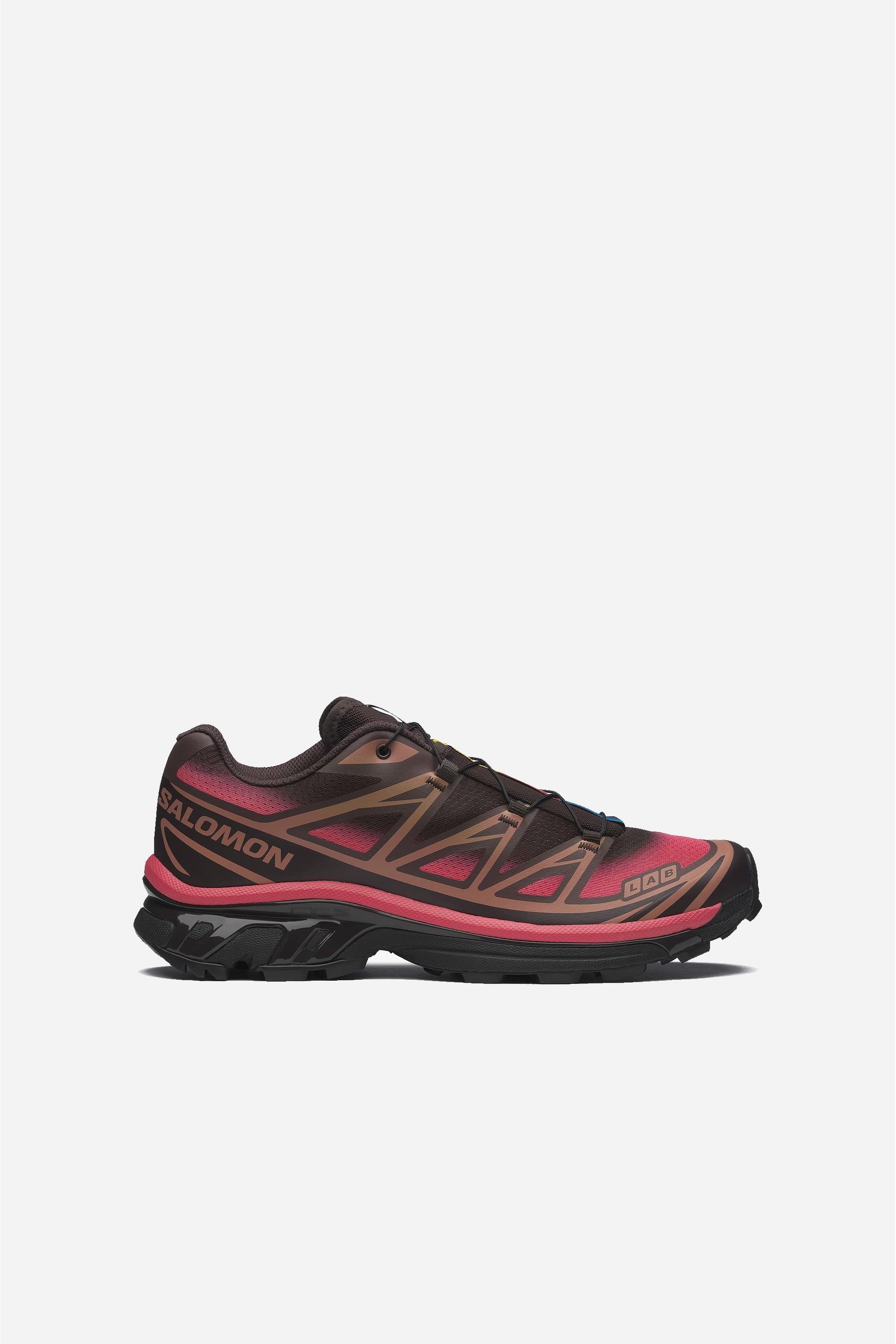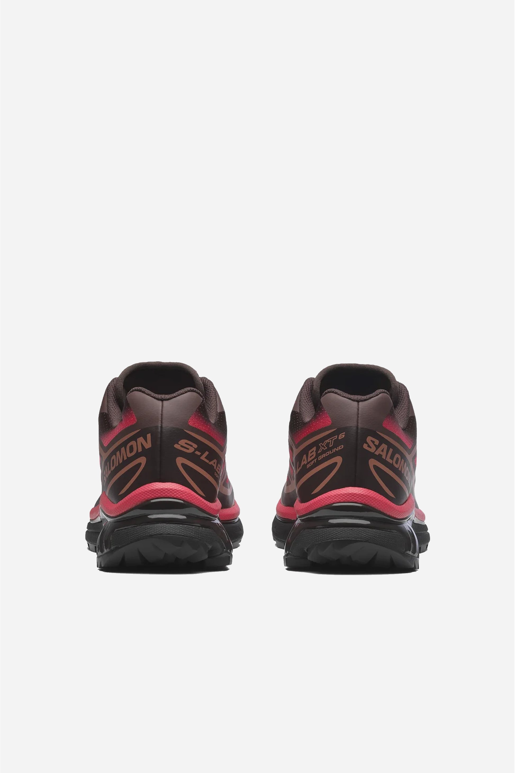XT-6 Skyline Black Coffee/Roast/Rouge Red from Salomon. These sneakers are made of mesh and rubber. They have the classic Salomon logo on the inside and outside. These sneakers are closed and tightened with laces.