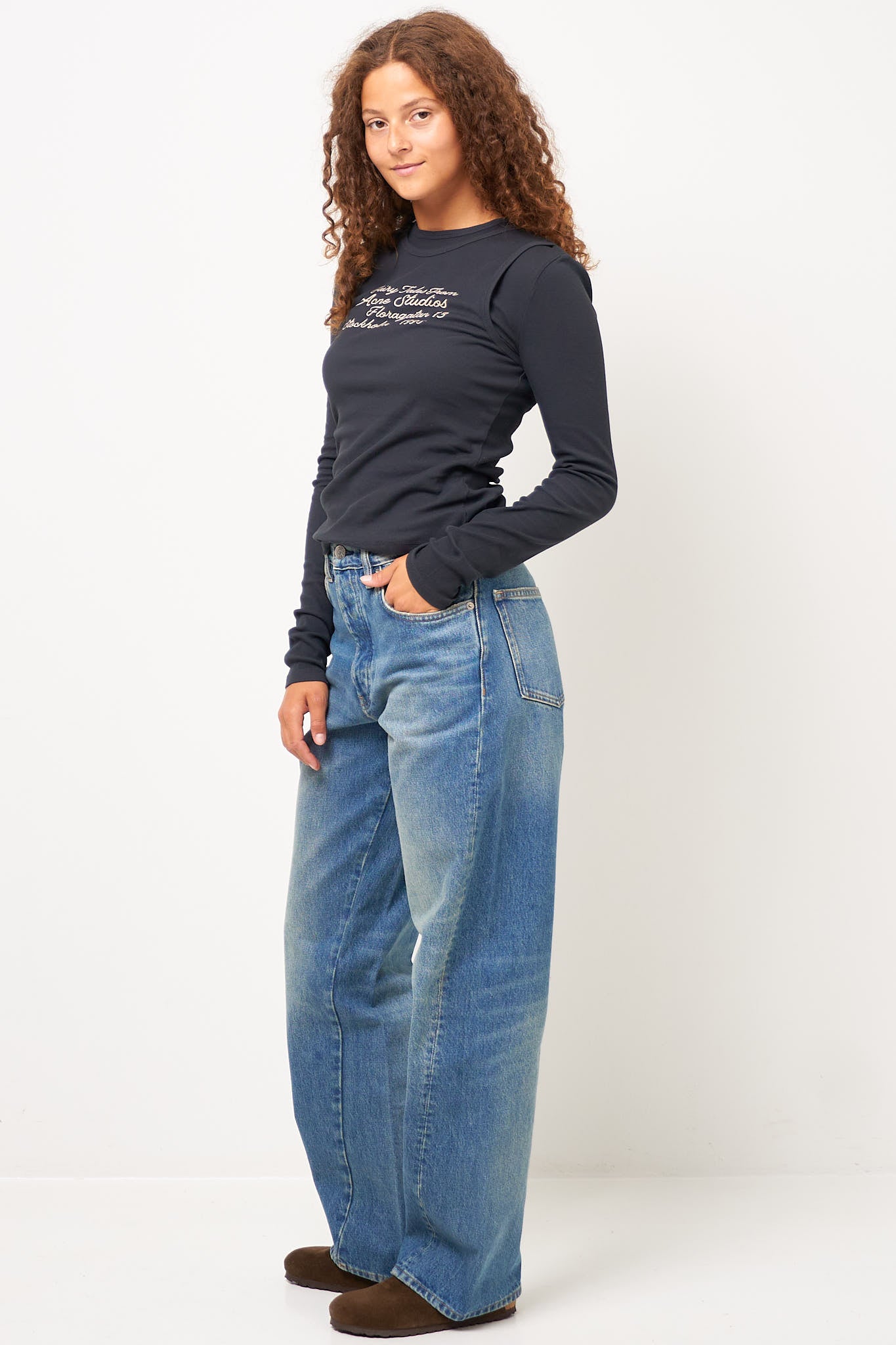 Layered Long-Sleeve T-Shirt Black from Acne Studios. This t-shirt is made from a cotton blend. It has a tight fit and is designed with a tank top over a long-sleeved base layer. The t-shirt has a print on the front.