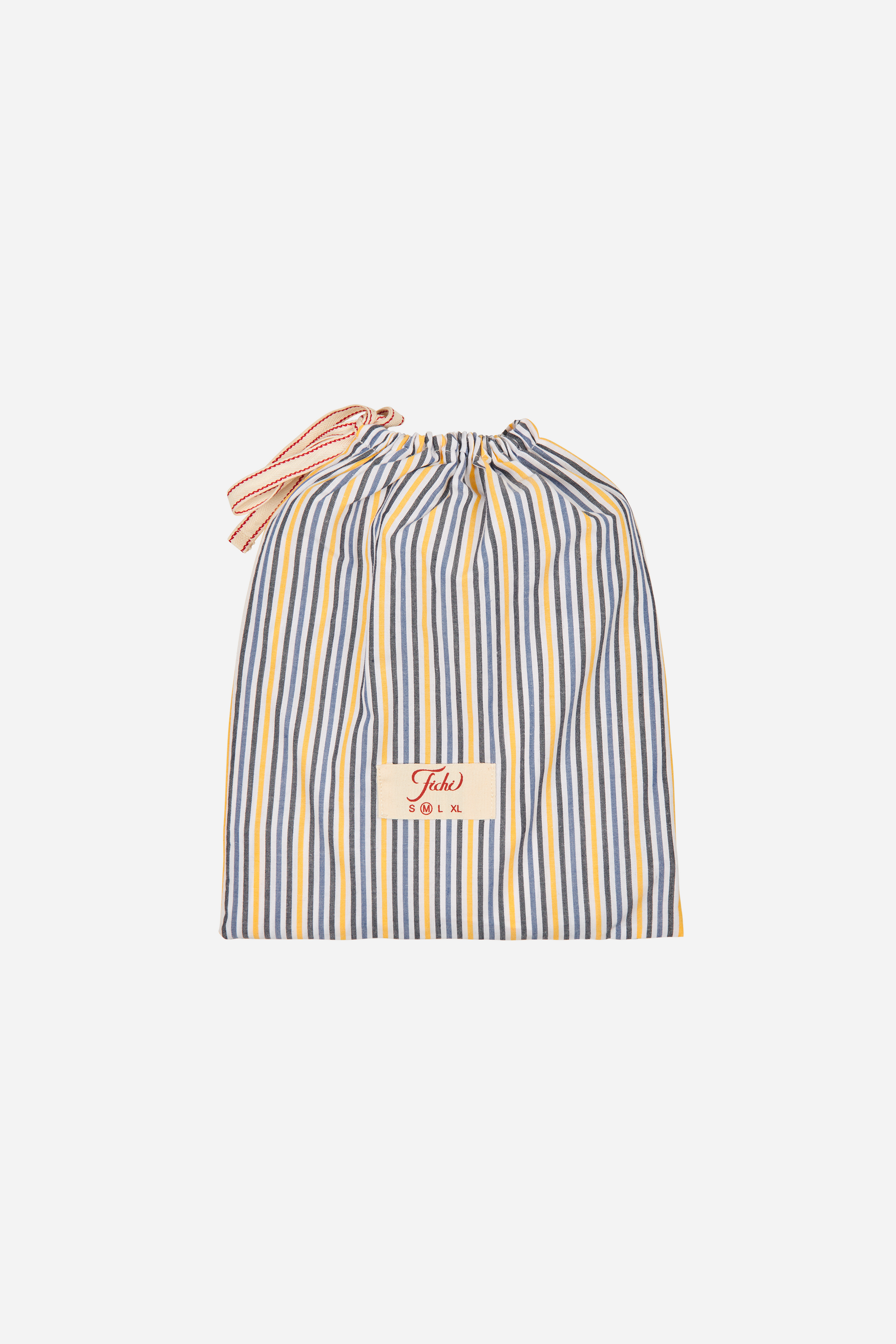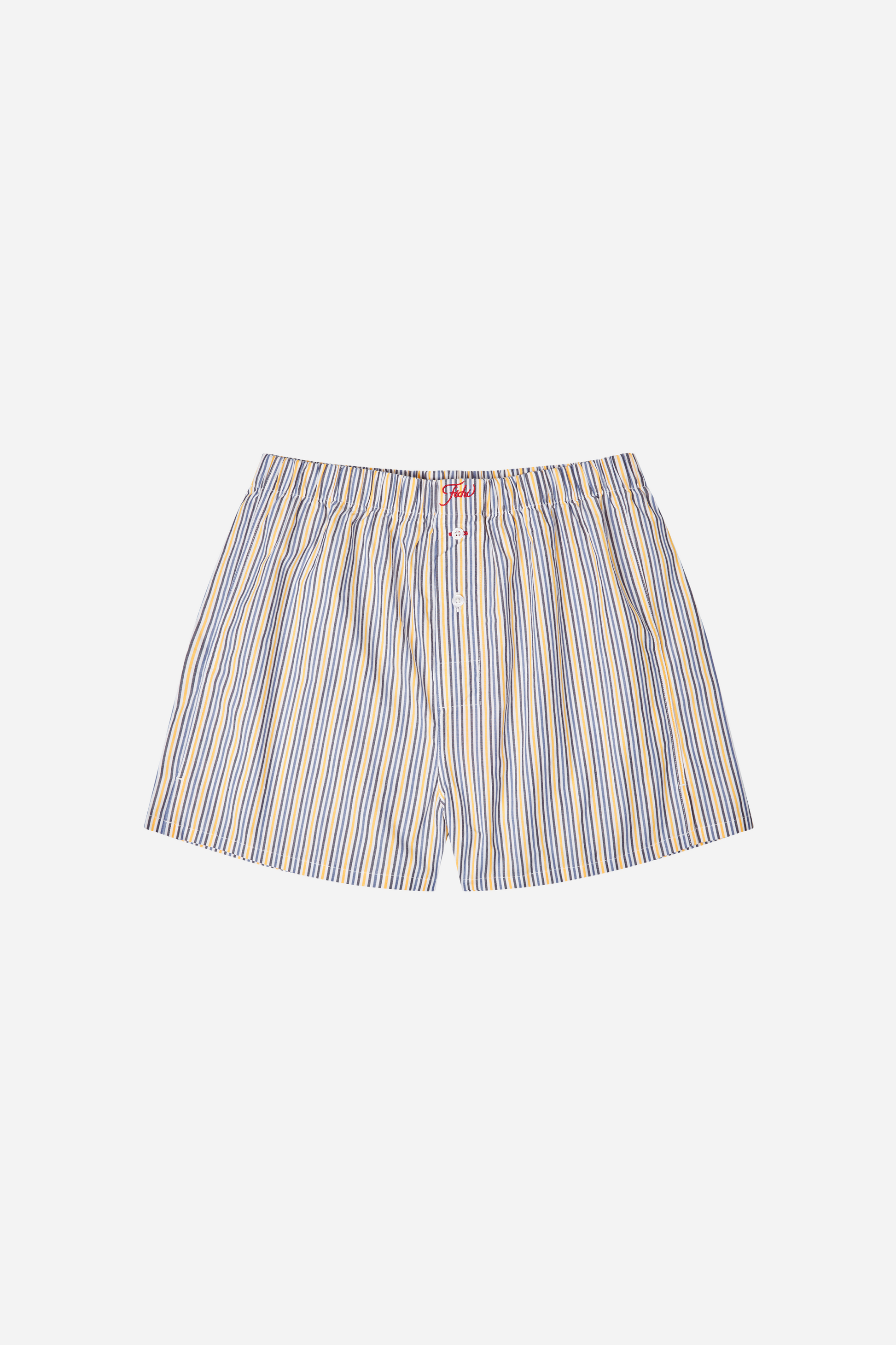 Sunshine Stripe Boxers from Fichi. These boxer shorts are made of cotton. They are designed with elastic waist and buttons at the front. These boxers have an embroidered Fichi logo at the front. The boxers come in a bag in the same fabric.