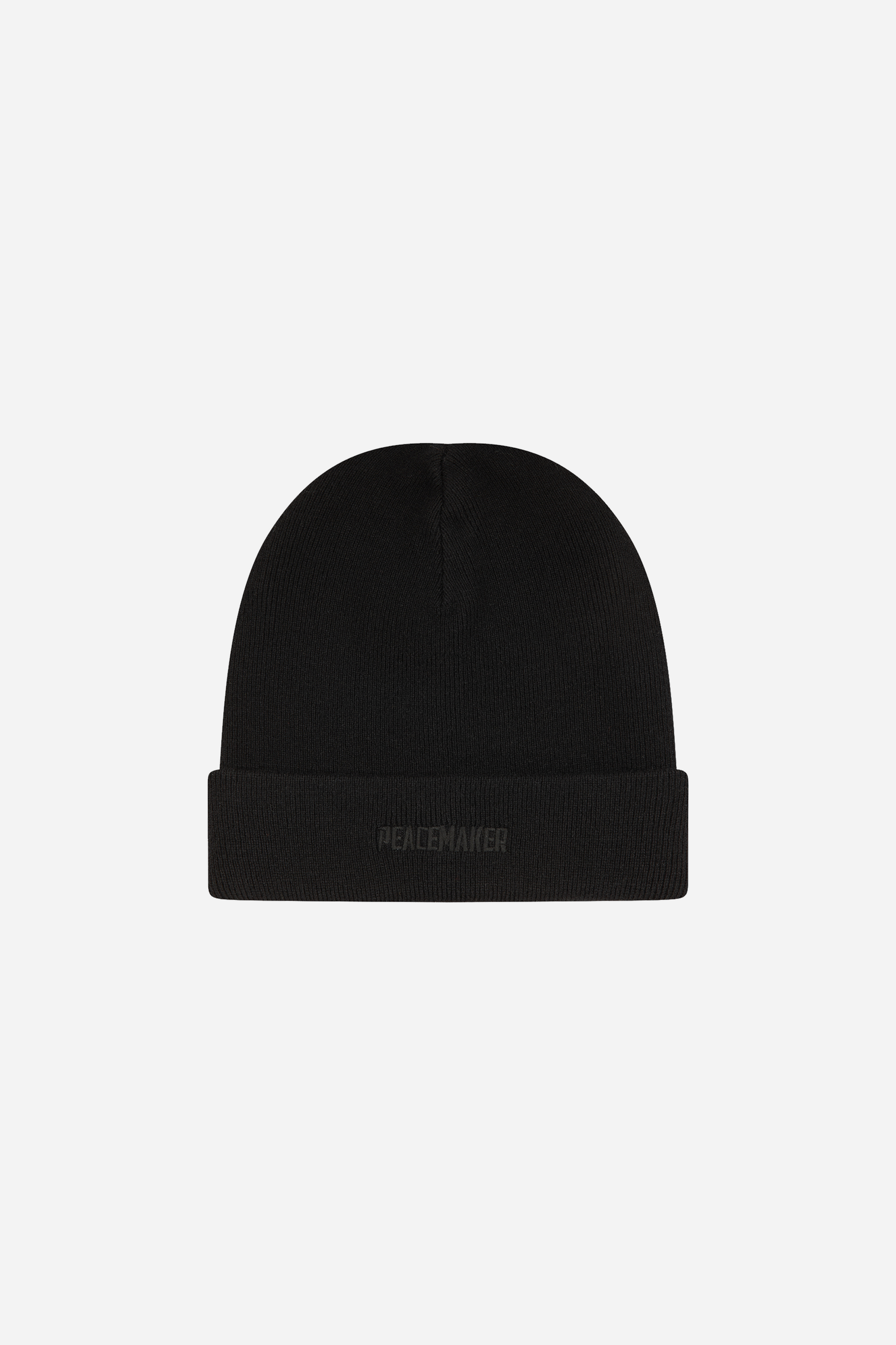 Beanie Black fra OAMC Peacemaker. Denne hue er fremstillet i uld. Huen er designet med fold og et broderet OAMC Peacemaker logo fortil.