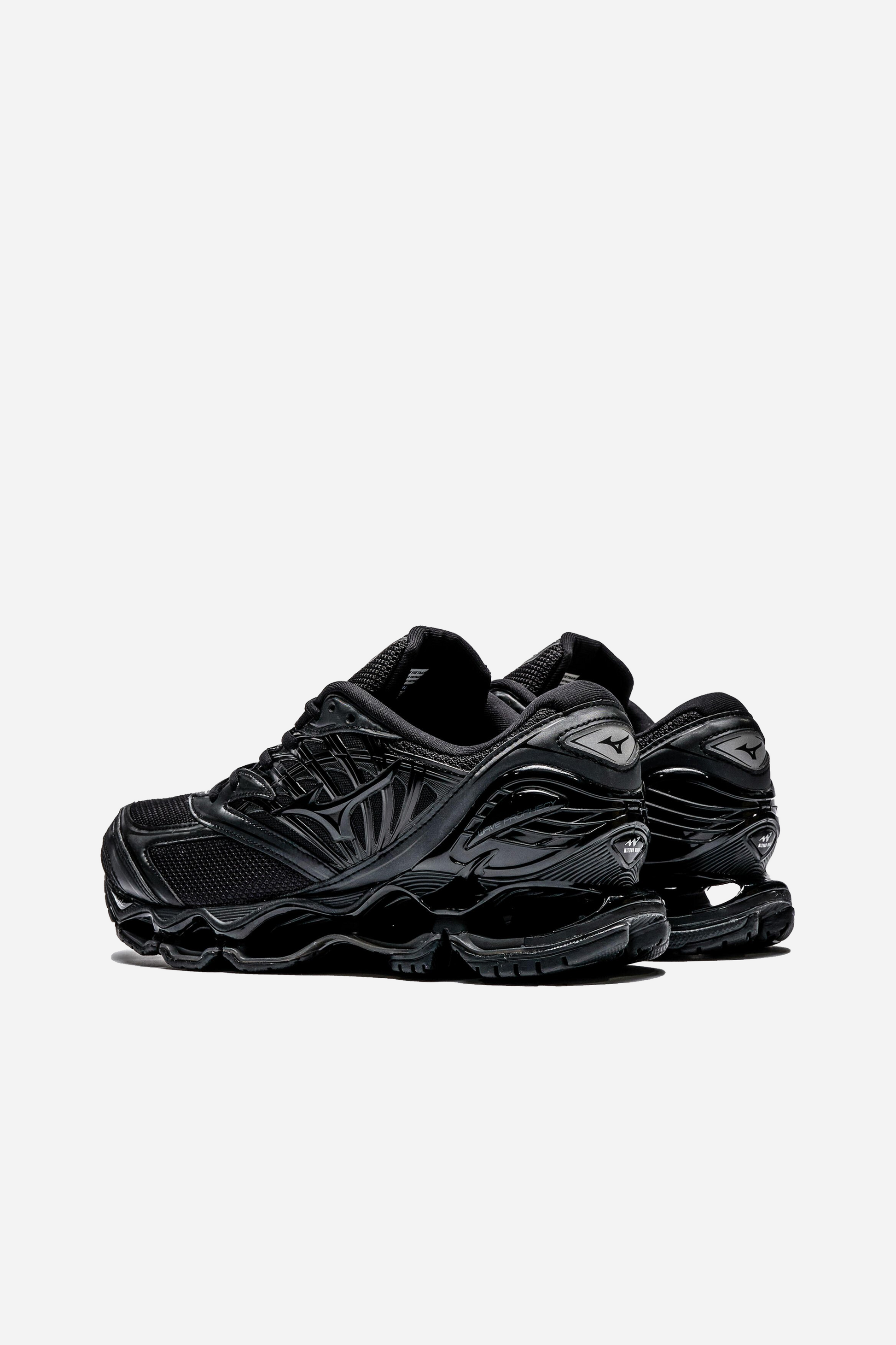 Wave Prophecy LS Black/Black/Black fra Mizuno. Disse sneakers er fremstillet i mesh, og har Mizuno Wave Technology, som giver bedre stabilitet og dynamisk støddæmpning. De er designet med snøre og Mizuno logo på siderne og på pløsen.
