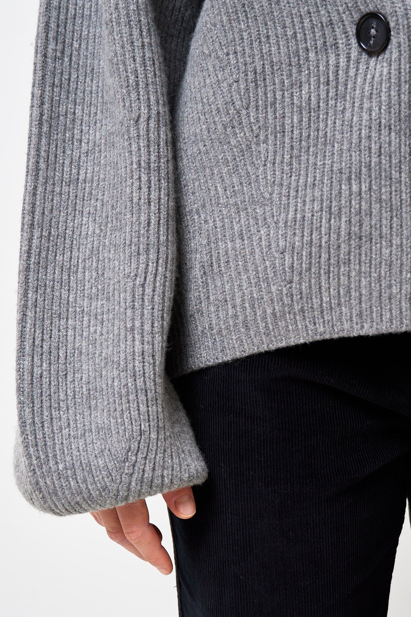 Shawl-Lapel Cardigan Mid Grey Melange fra TOTEME. Denne strikkede cardigan er fremstillet i en kraftig uldblanding. Den har en oversized pasform med to knapper fortil og er designet med en sjalskrave og brede ærmer.