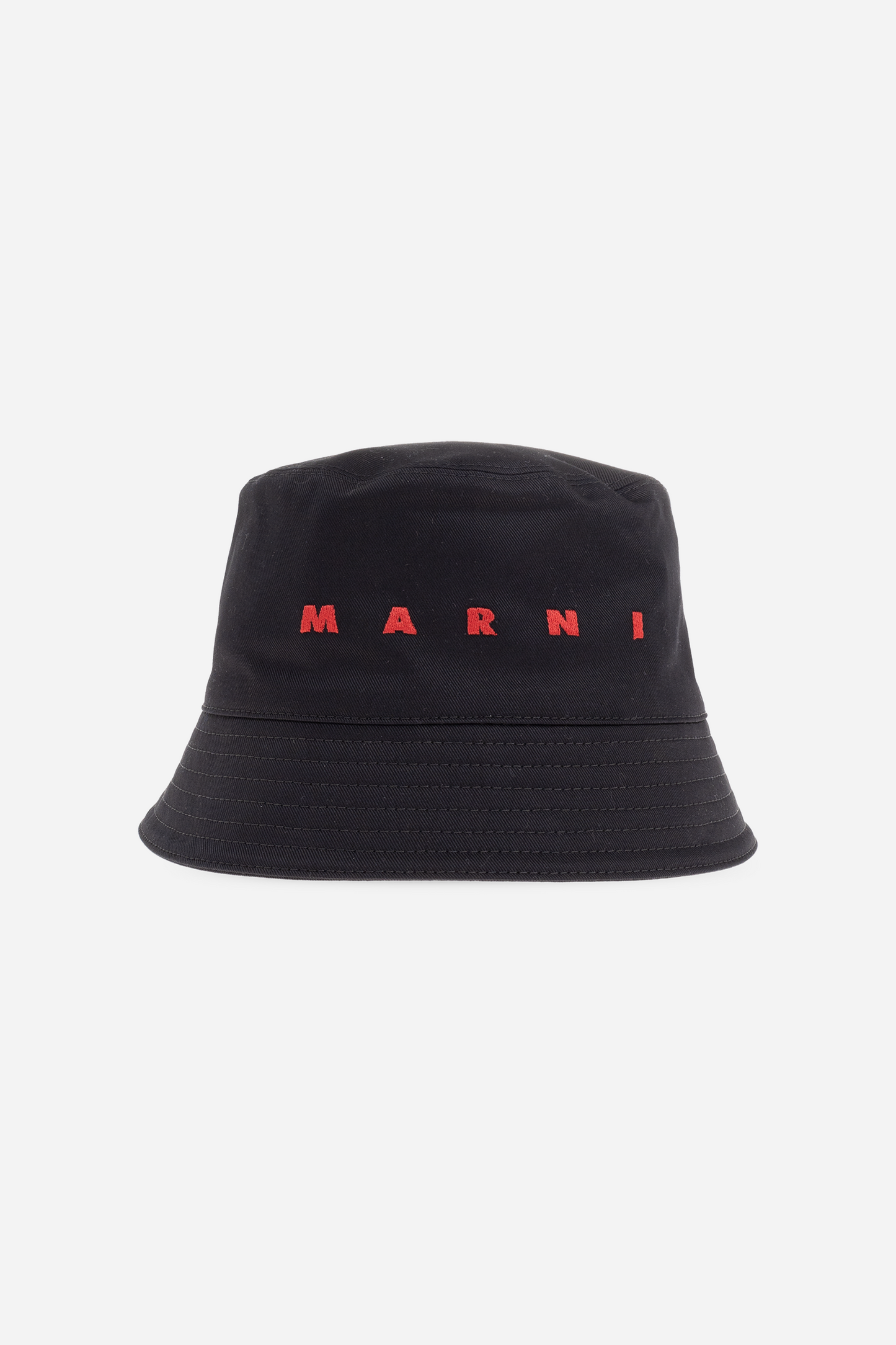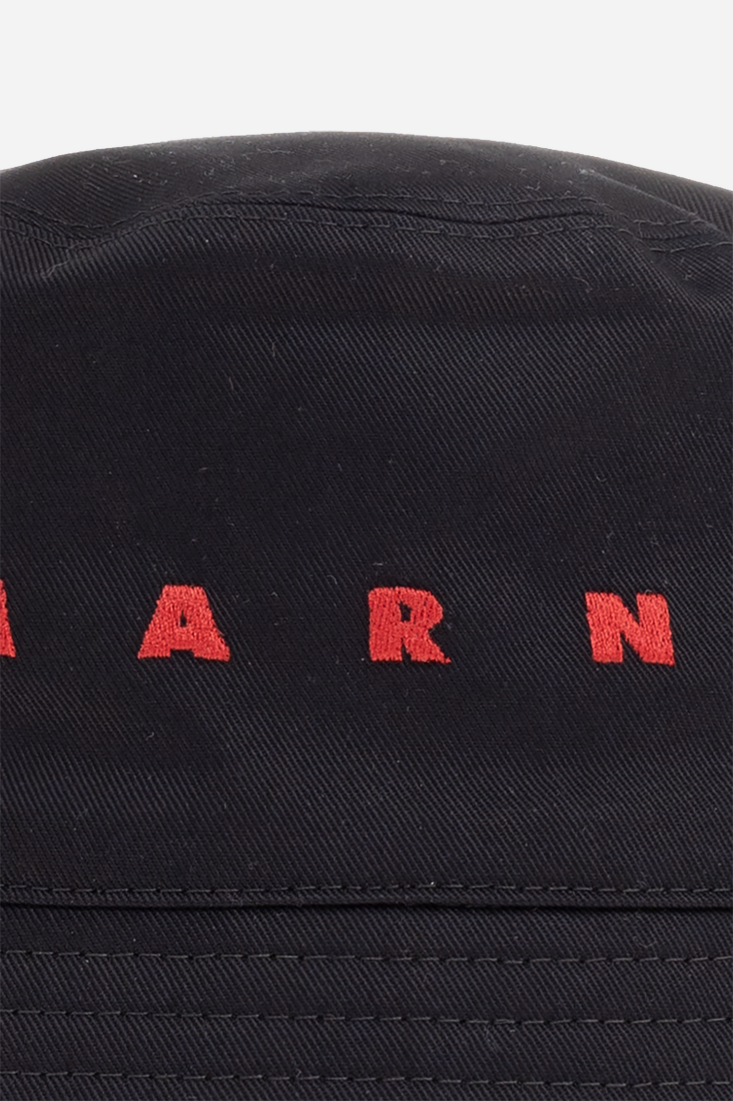 Bucket Hat Embroidered Logo Black fra Marni. Denne hat er fremstillet i bomuld. Den er designet med med et broderet Marni logo fortil. Hatten er Onesize.