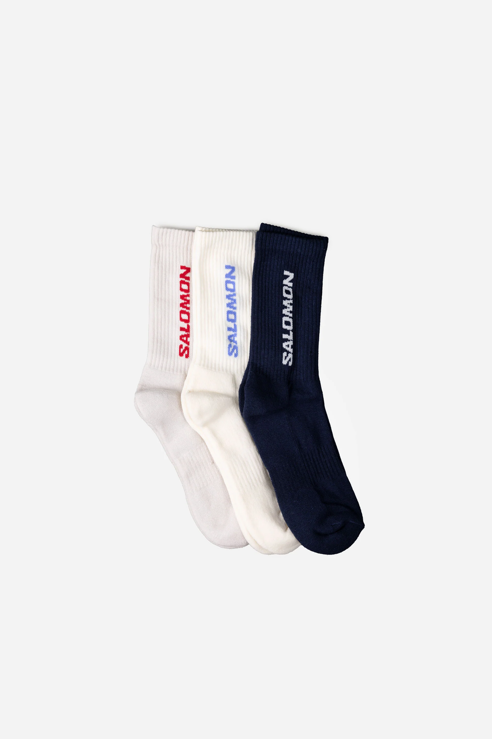 Everyday Crew 3-Pack Spellbound/Vanilla Ice/Lunar Rock fra Salomon. Disse strømper er fremstillet i en strækbar bomuldsblanding og har et sort logo på siden. Pakken indeholder 3 par.