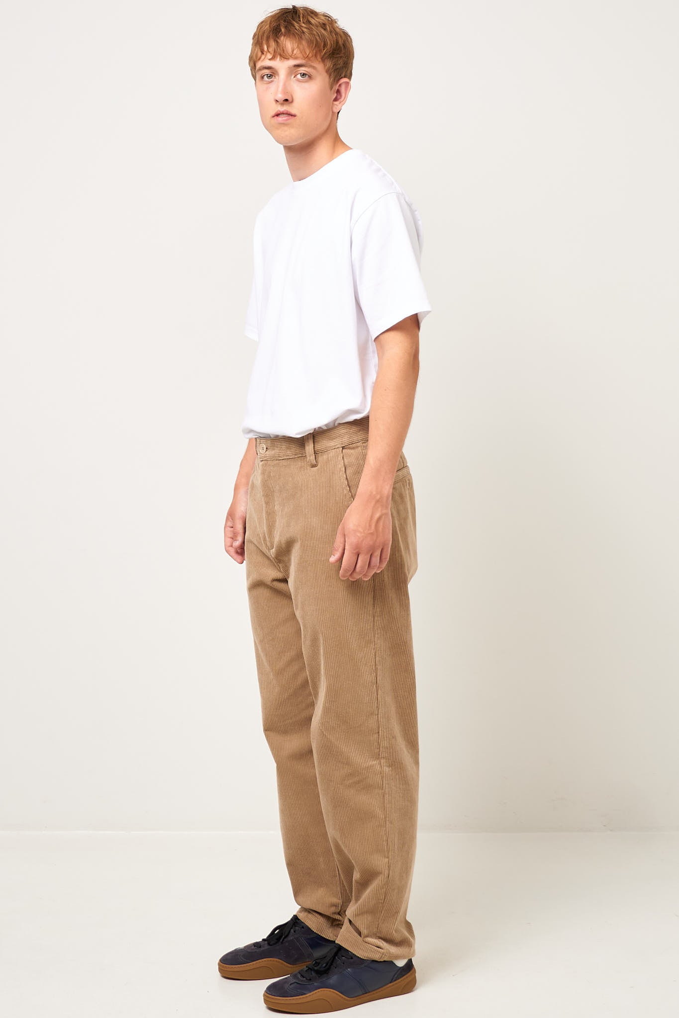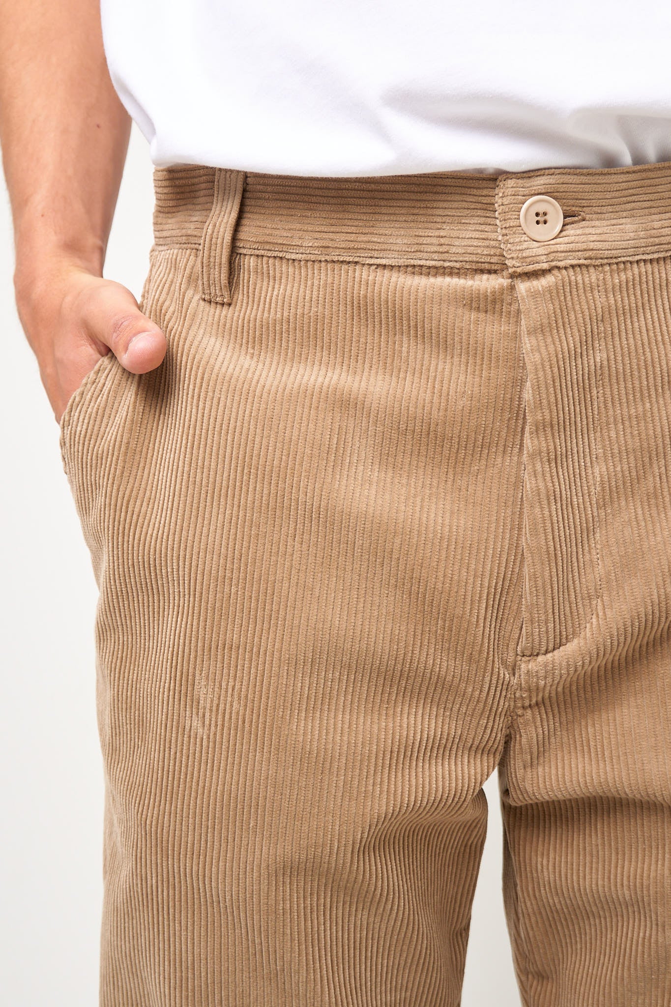 Lawrence Chino Beige fra A.P.C. Disse bukser er fremstillet i en blød bomuldsfløjl. De har en tæt pasform med lige ben. Bukserne har en mellemhøj talje og bæltestropper
