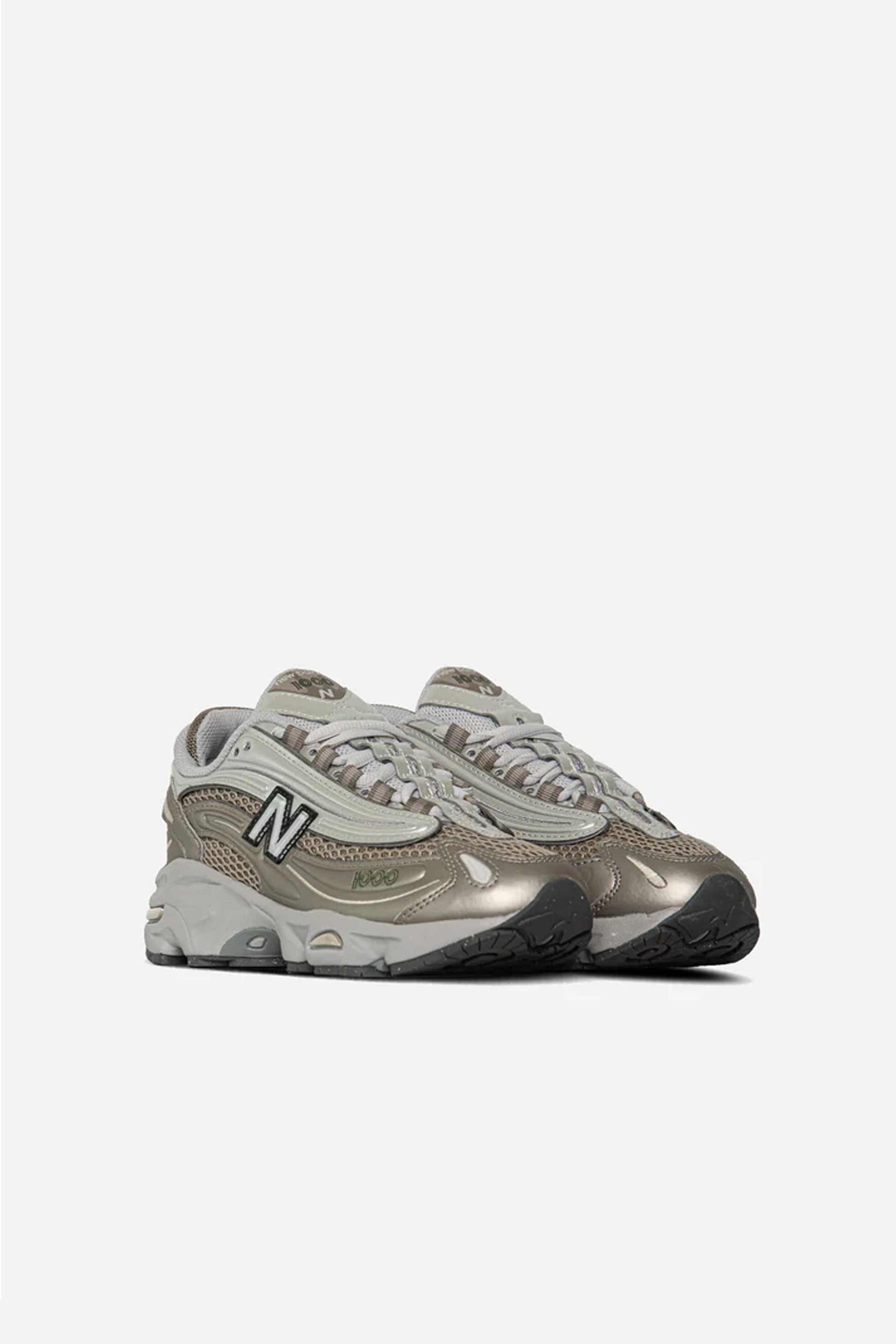 M1000N Arid Stone/Light Silver Metallic fra New Balance. Disse sneakers er fremstillet i mesh og læder. De er designet med paneler i sølv, og et New Balance logo på hver side.