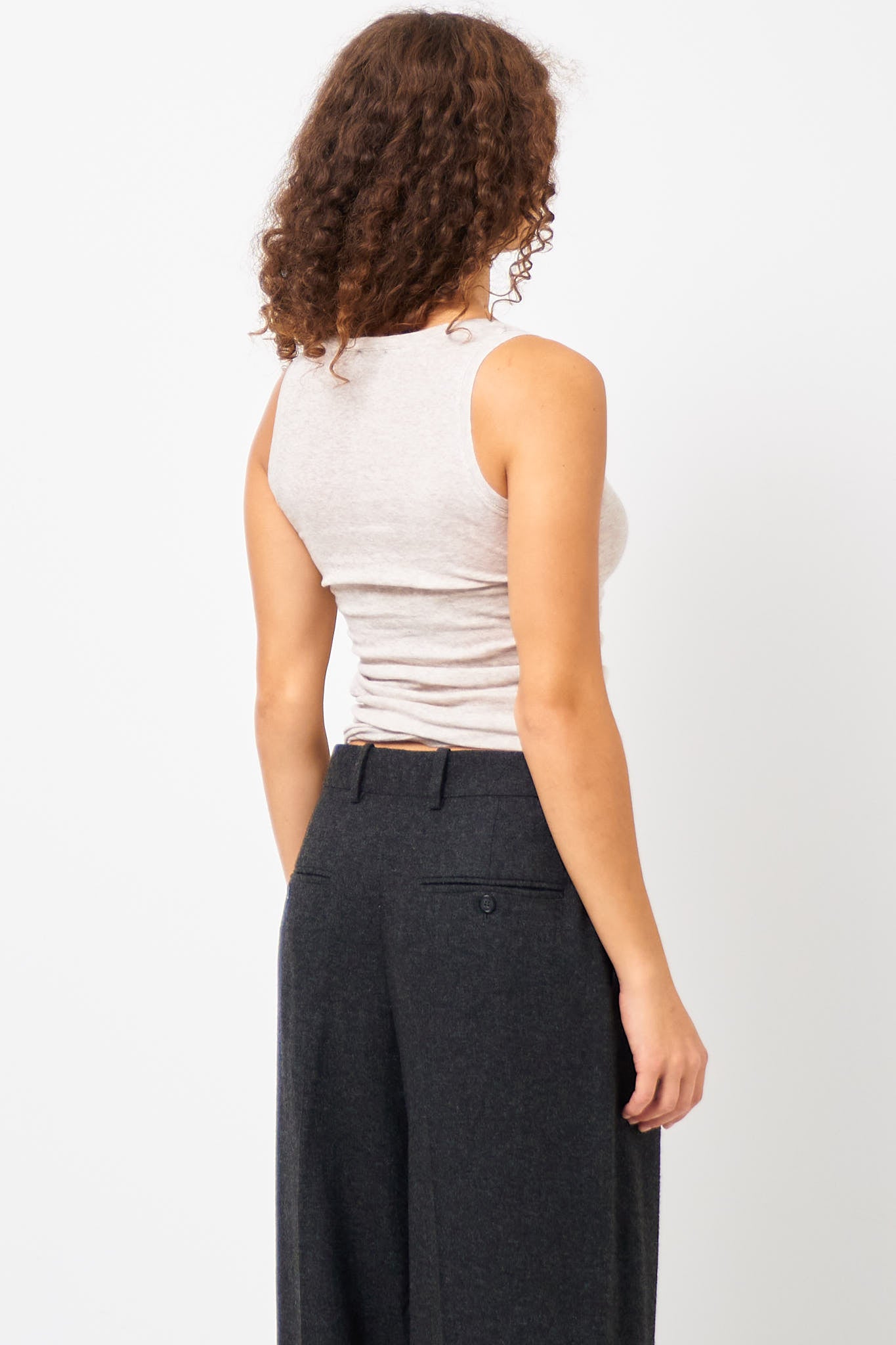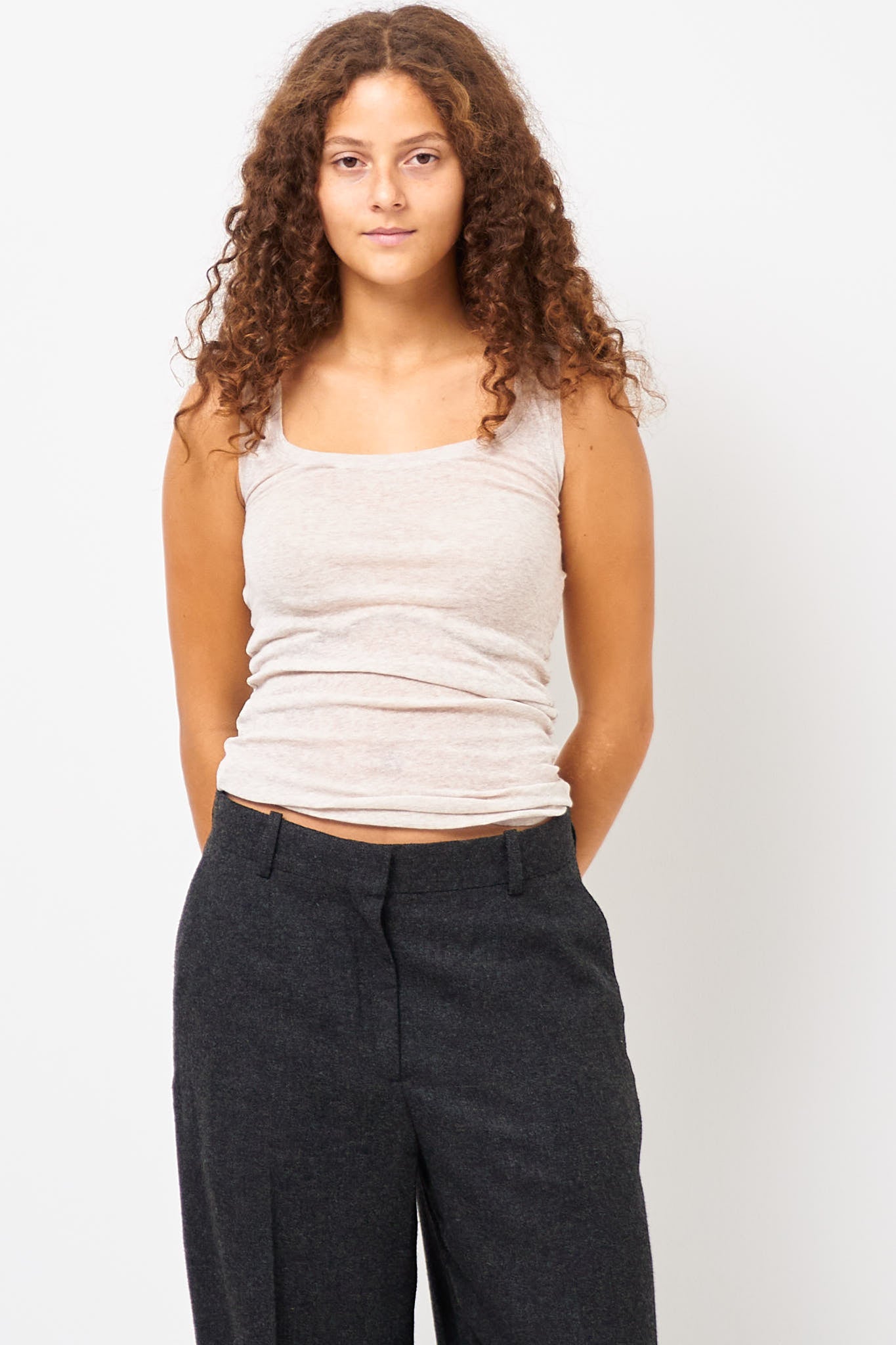 Massachusetts Top Cream Melange fra American Vintage. Denne top er fremstillet i bomuld. Den er designet med en dyb rund halsudskæring, brede stropper og har en tætsiddende pasform.