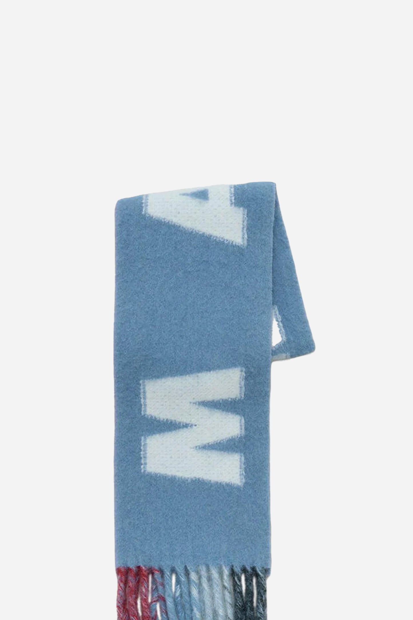 Striped Wool Scarf Blue/Lilac fra Marni. Dette tørklæde er fremstillet i en uld blanding. Det har en overdimensioneret størrelse og et Marni logo på ydersiden og striber på indersiden.