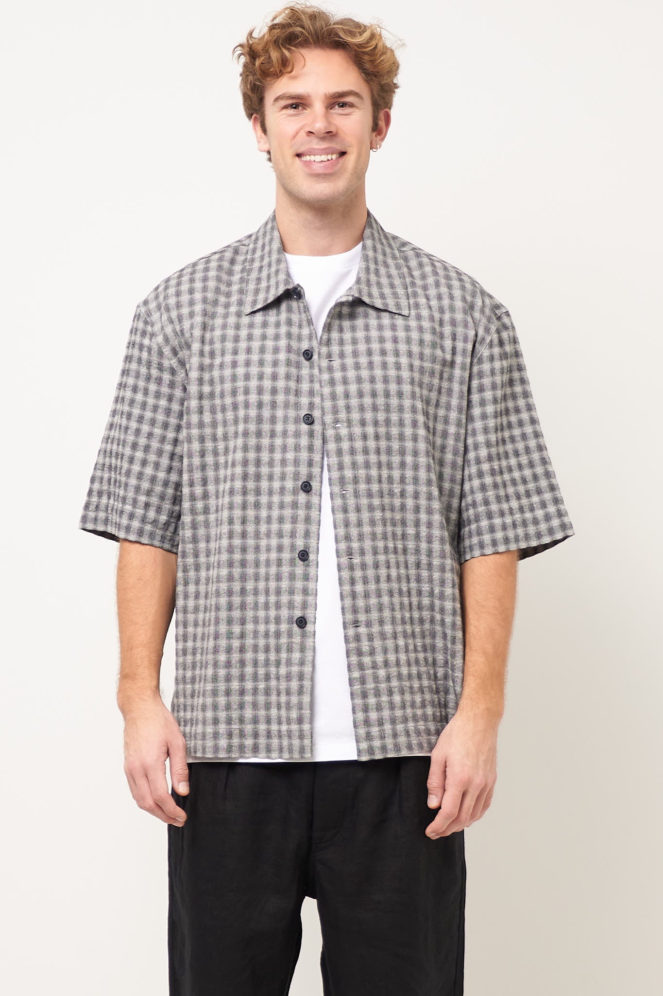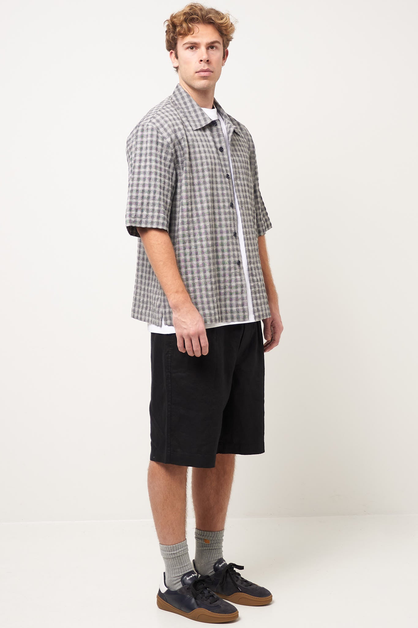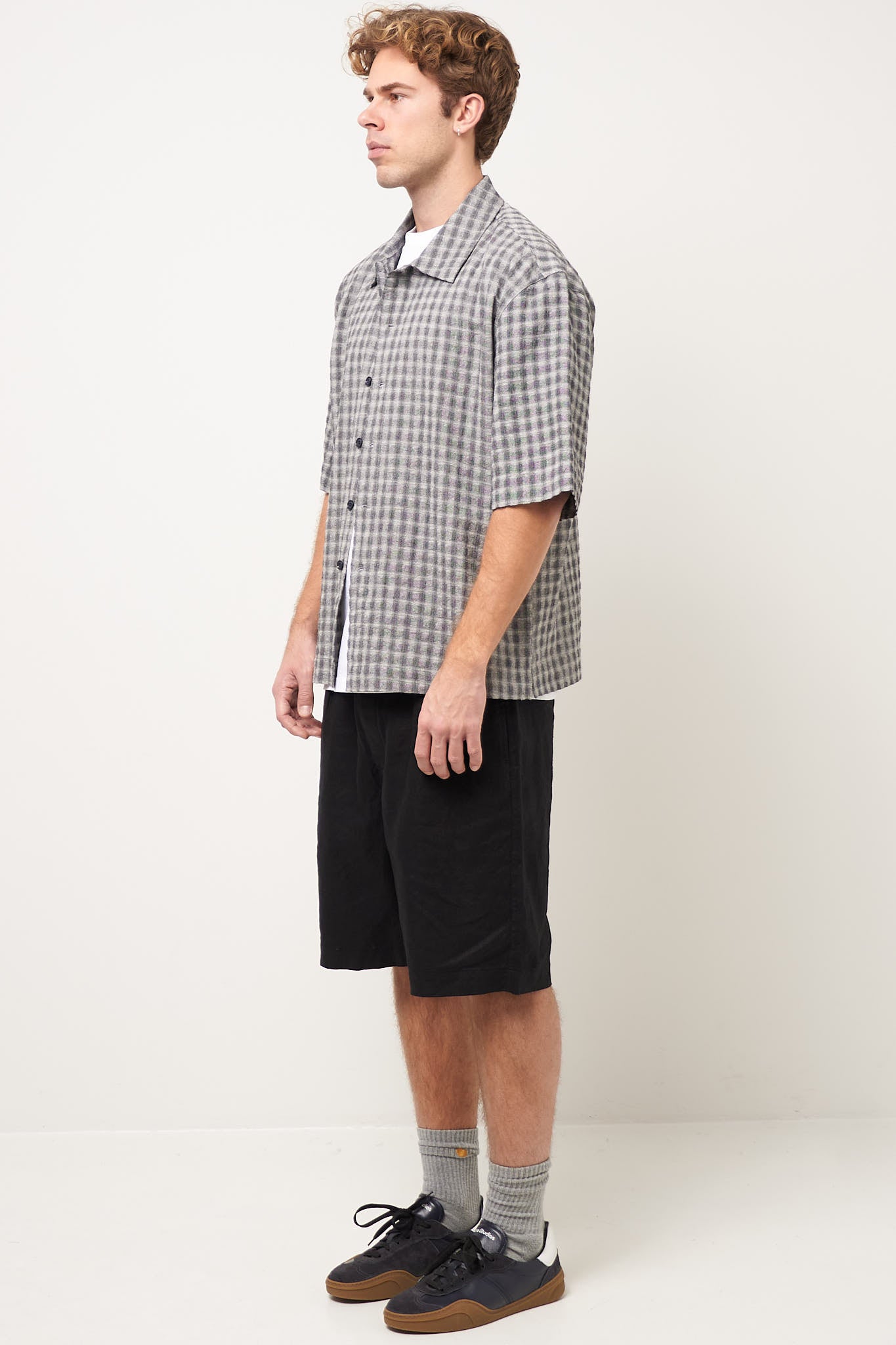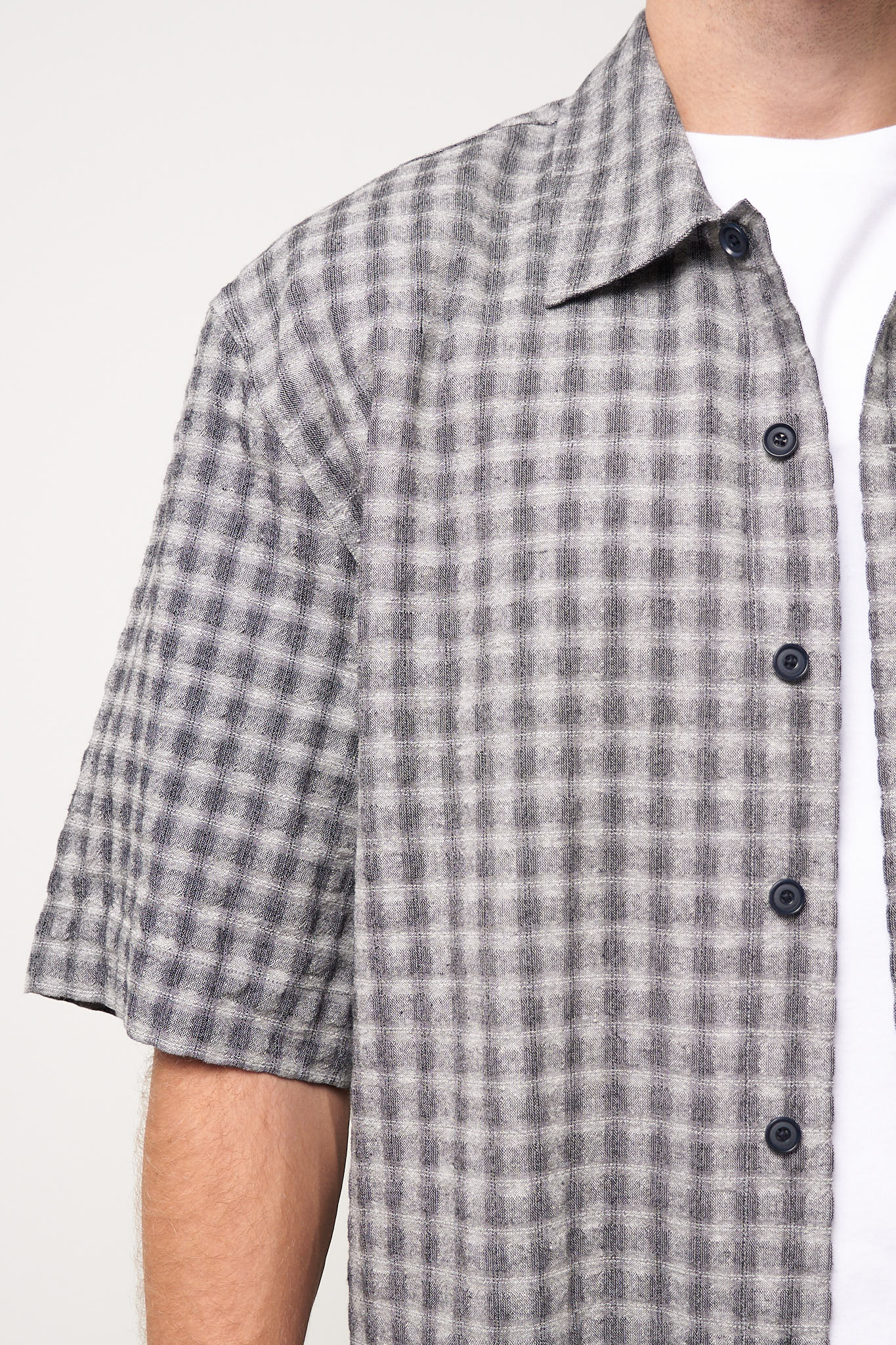 Adam Shirt Antracite from Sunflower. This shirt is made from a linen blend. It has a regular fit with short sleeves and a v-neckline. The shirt closes with buttons.