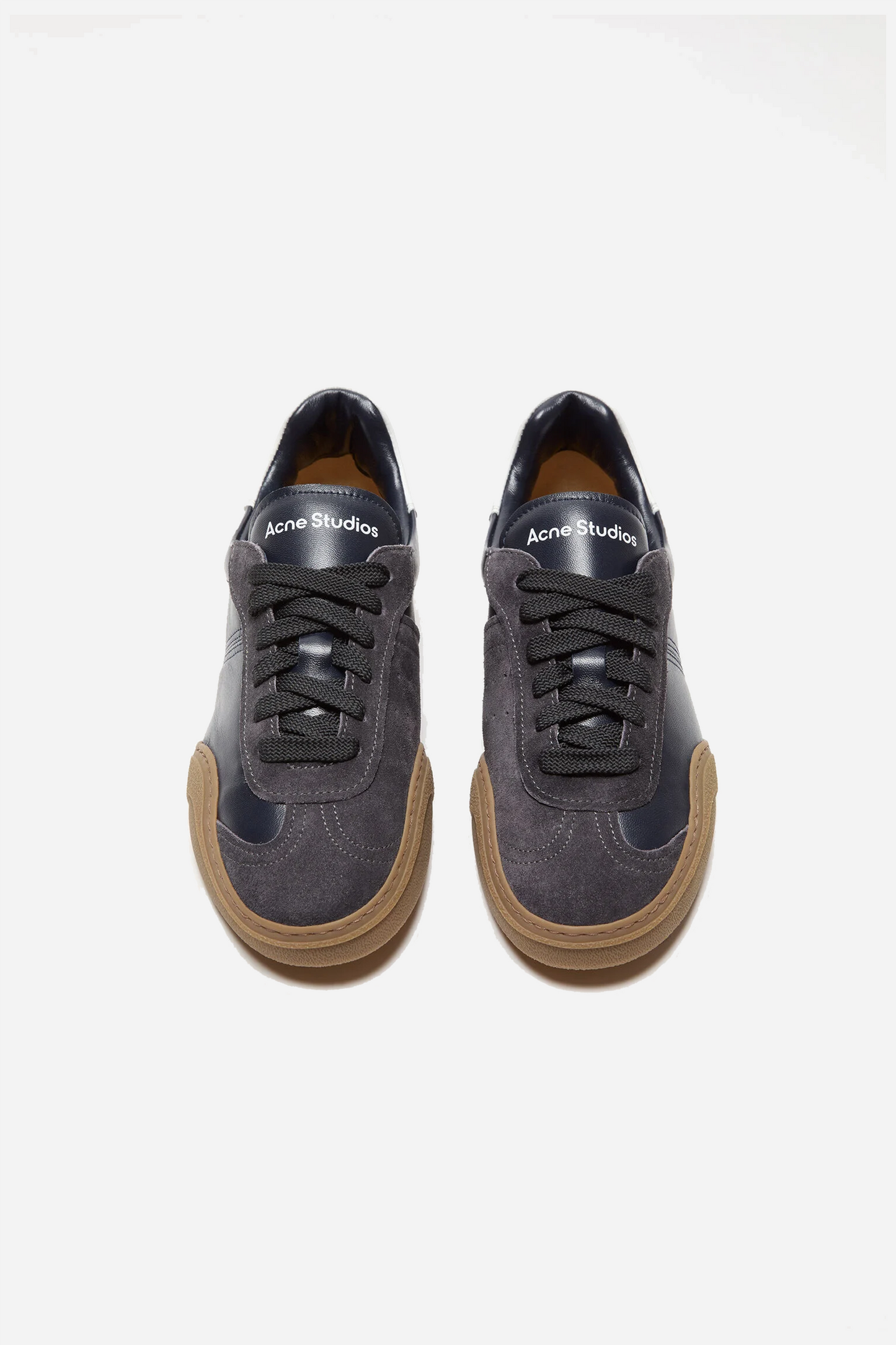 Bars W Sneakers Anthracite/Grey from Acne Studios. These sneakers are made of leather. They are designed with rubber soles and close with laces. They have suede details on the upper and an Acne Studios logo on the tongue.