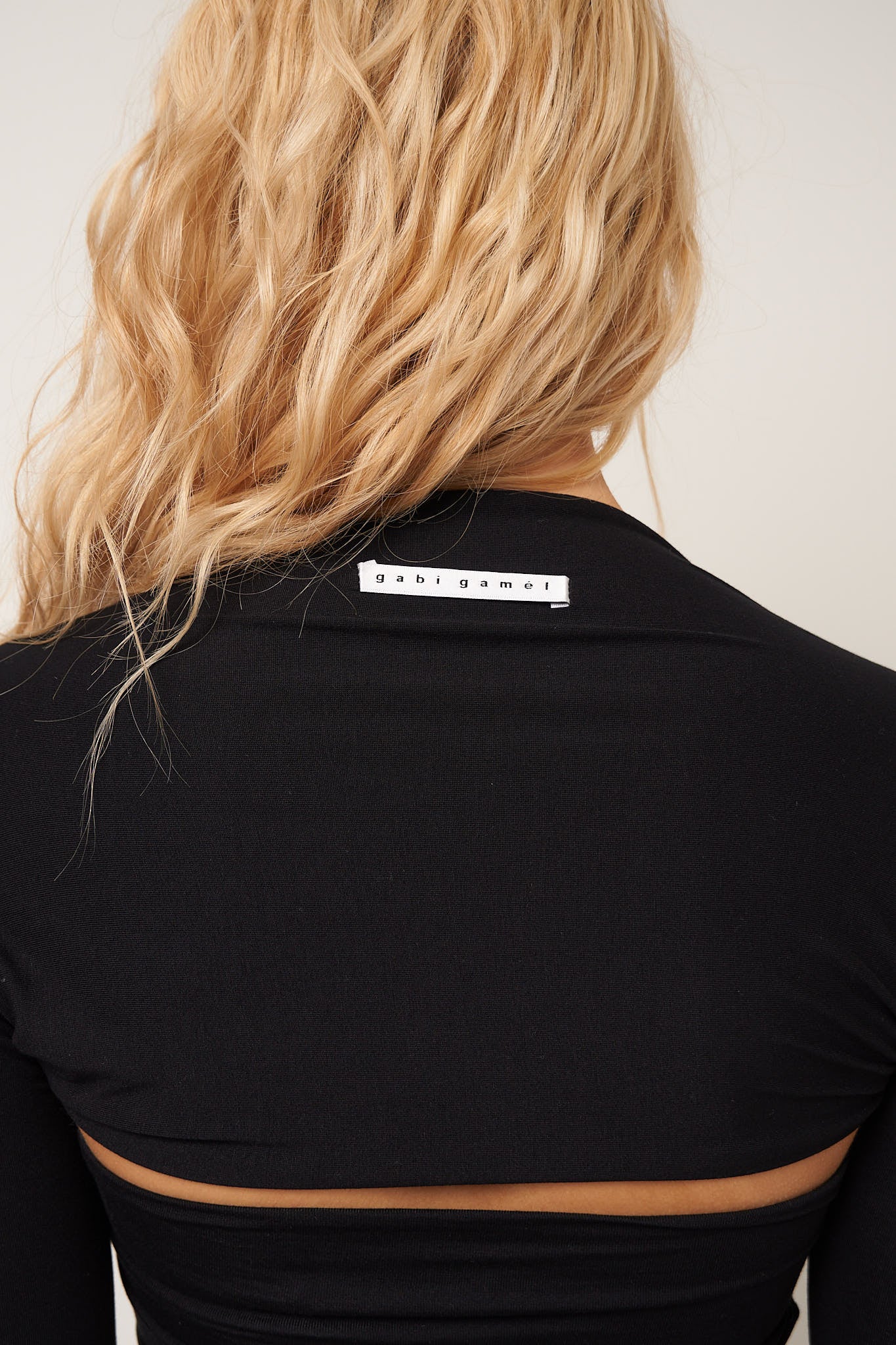 Bolero Black from gabi gamél. This bolero is made of a stretchy viscose blend. It is designed with raw lengths, slits in the sleeves and an embroidered gabi gamél logo on the back.