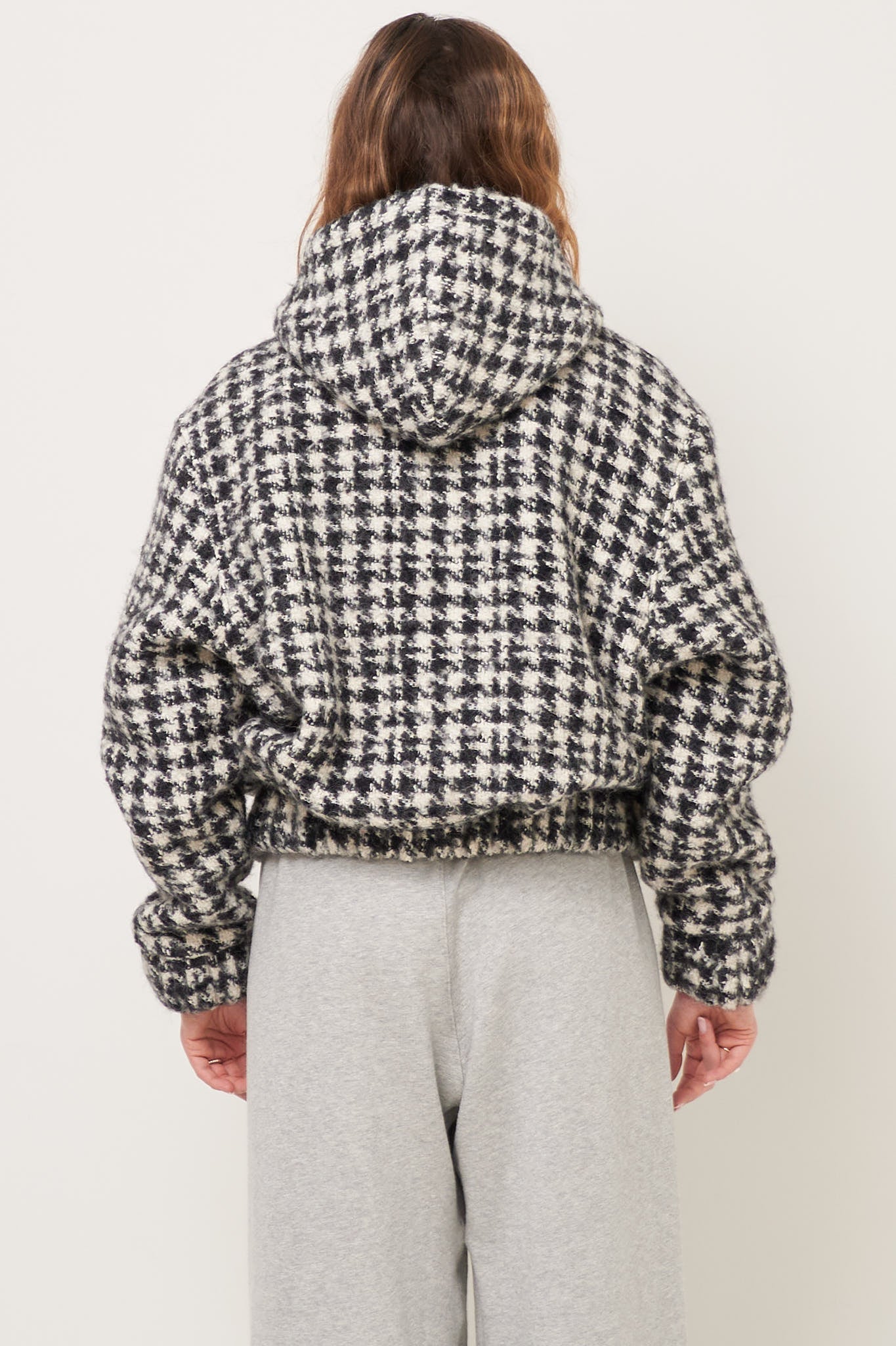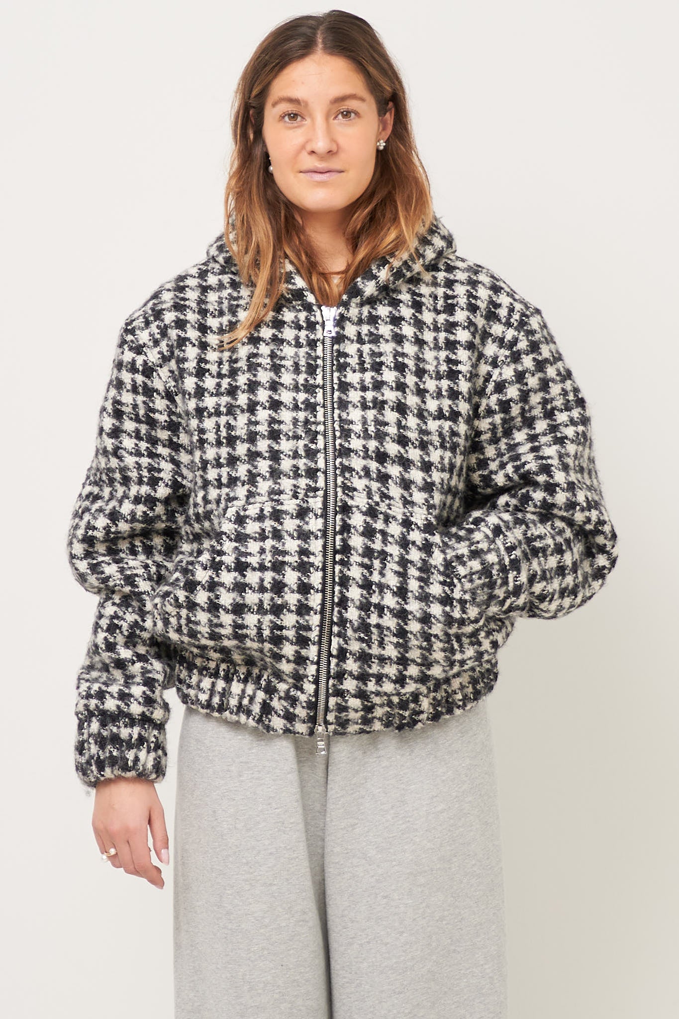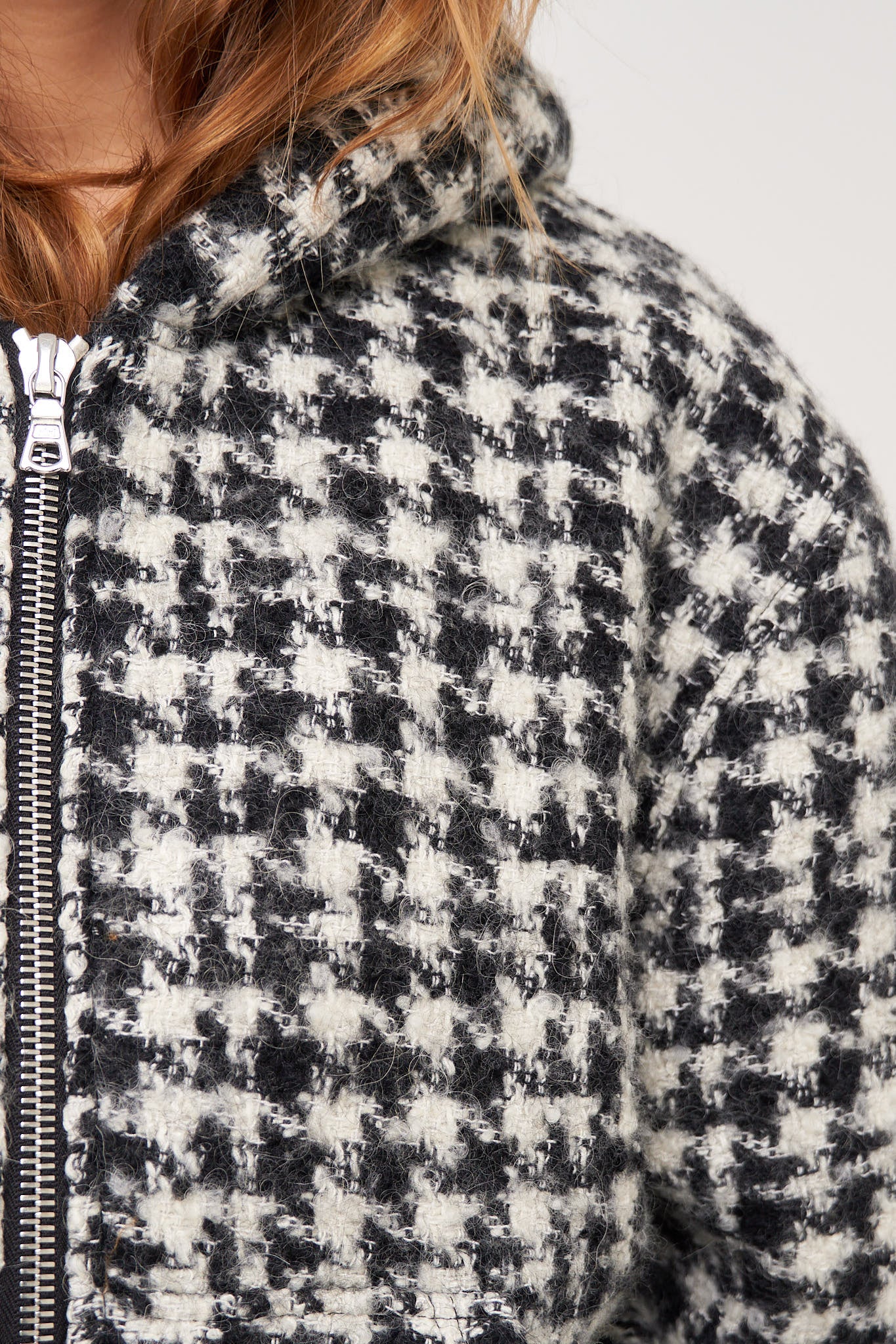 Bouclé Hooded Zip-Up Jacket Houndstooth Black/White