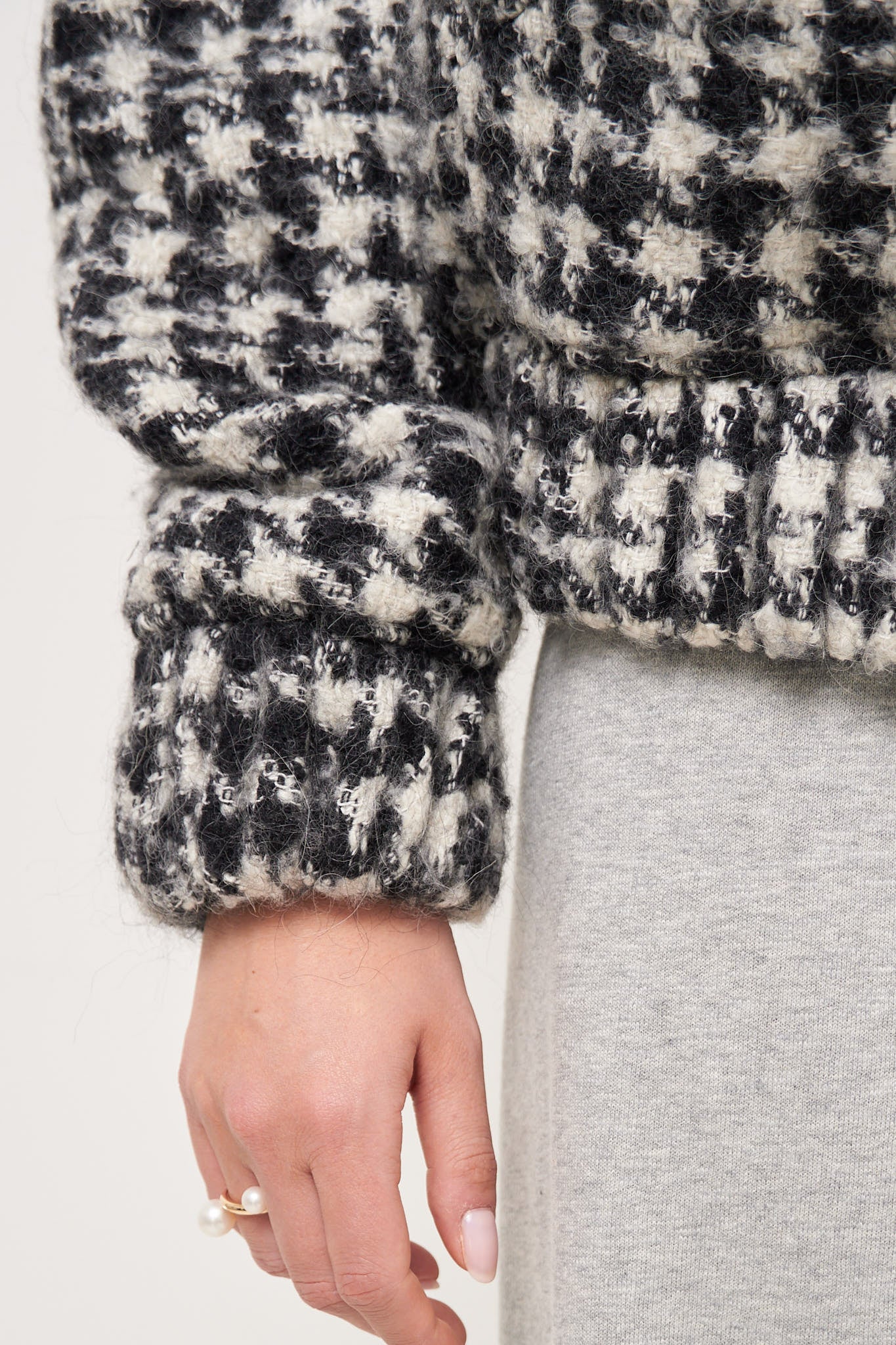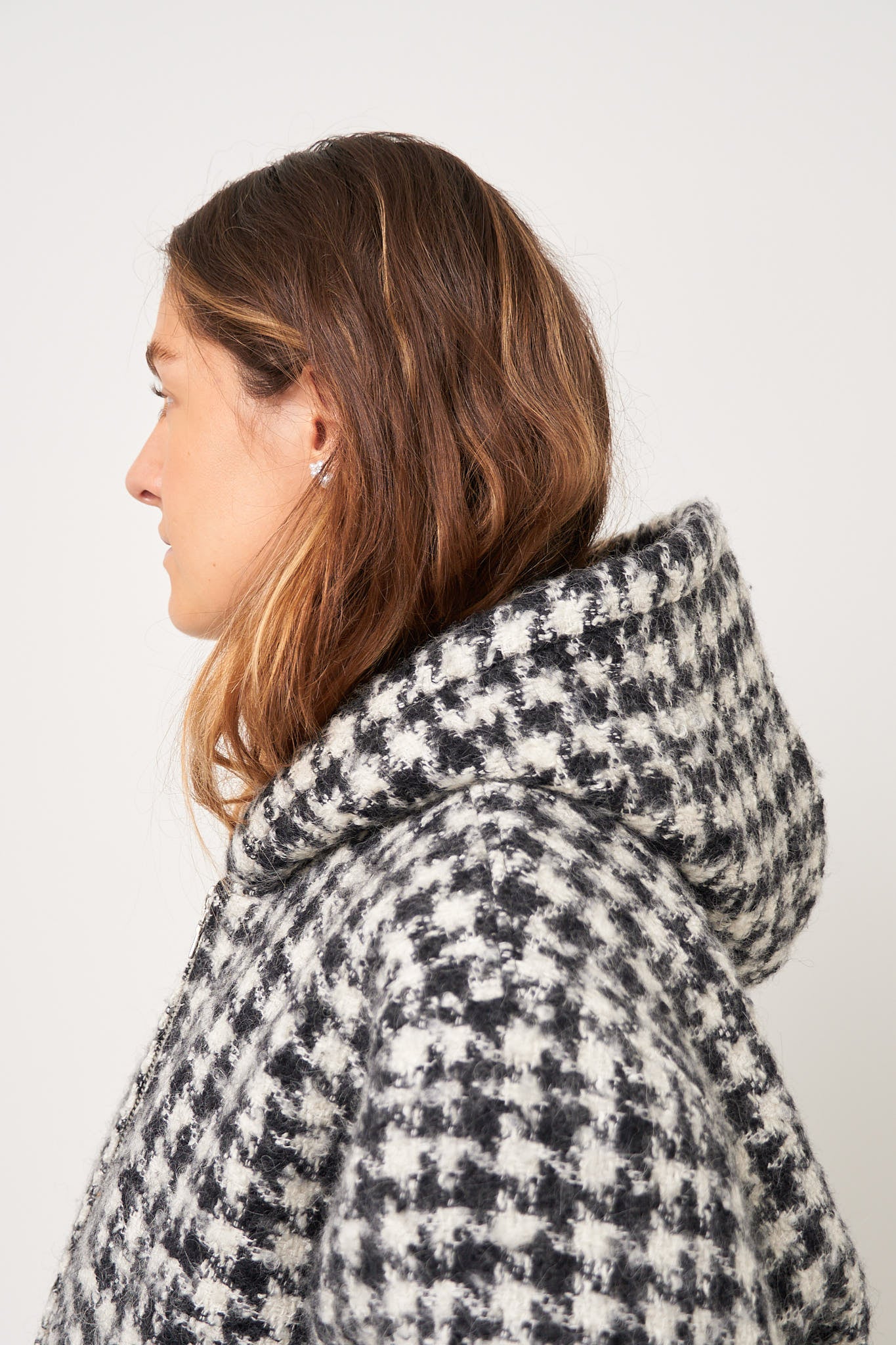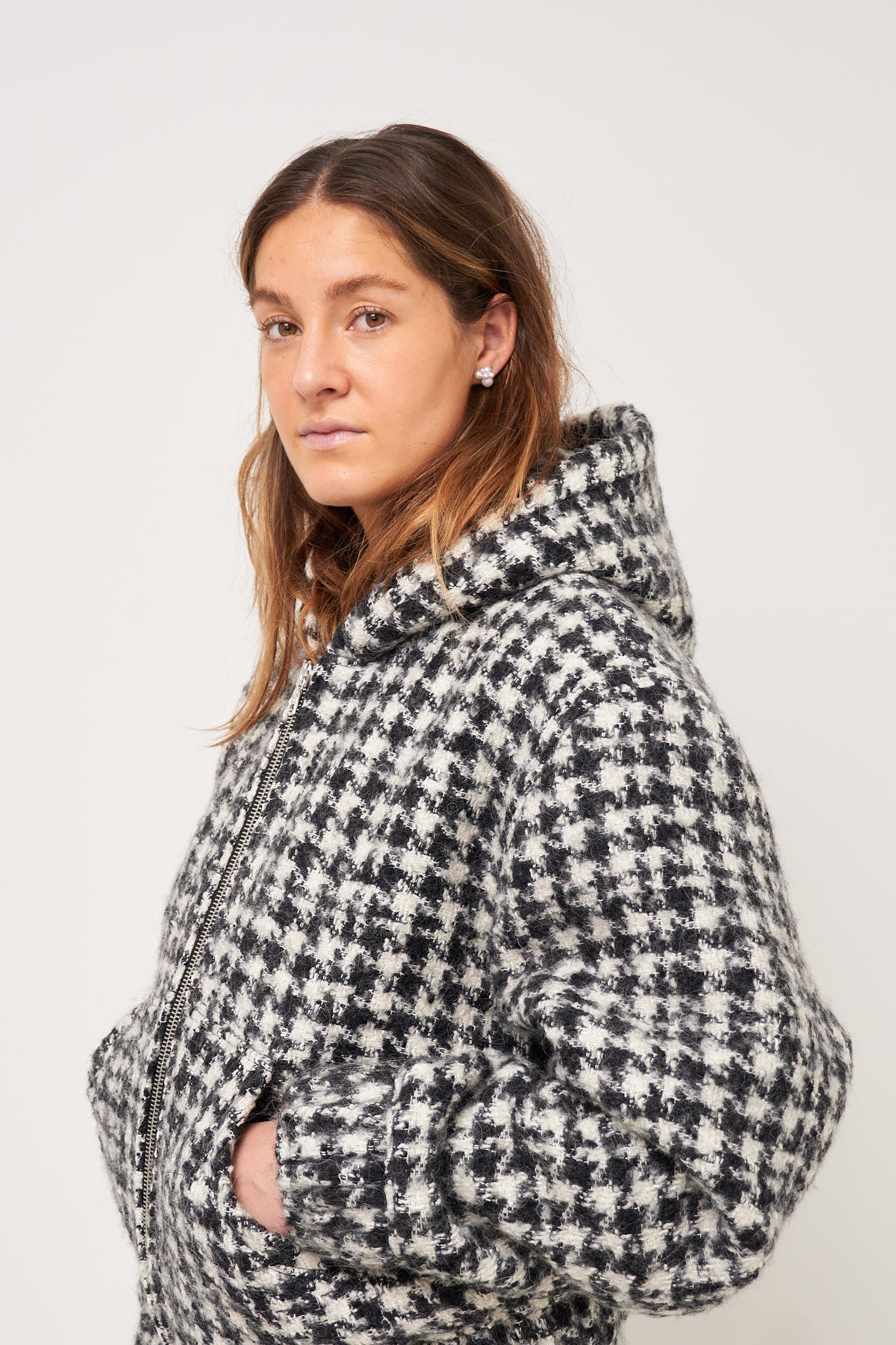 Bouclé Hooded Zip-Up Jacket Houndstooth Black/White