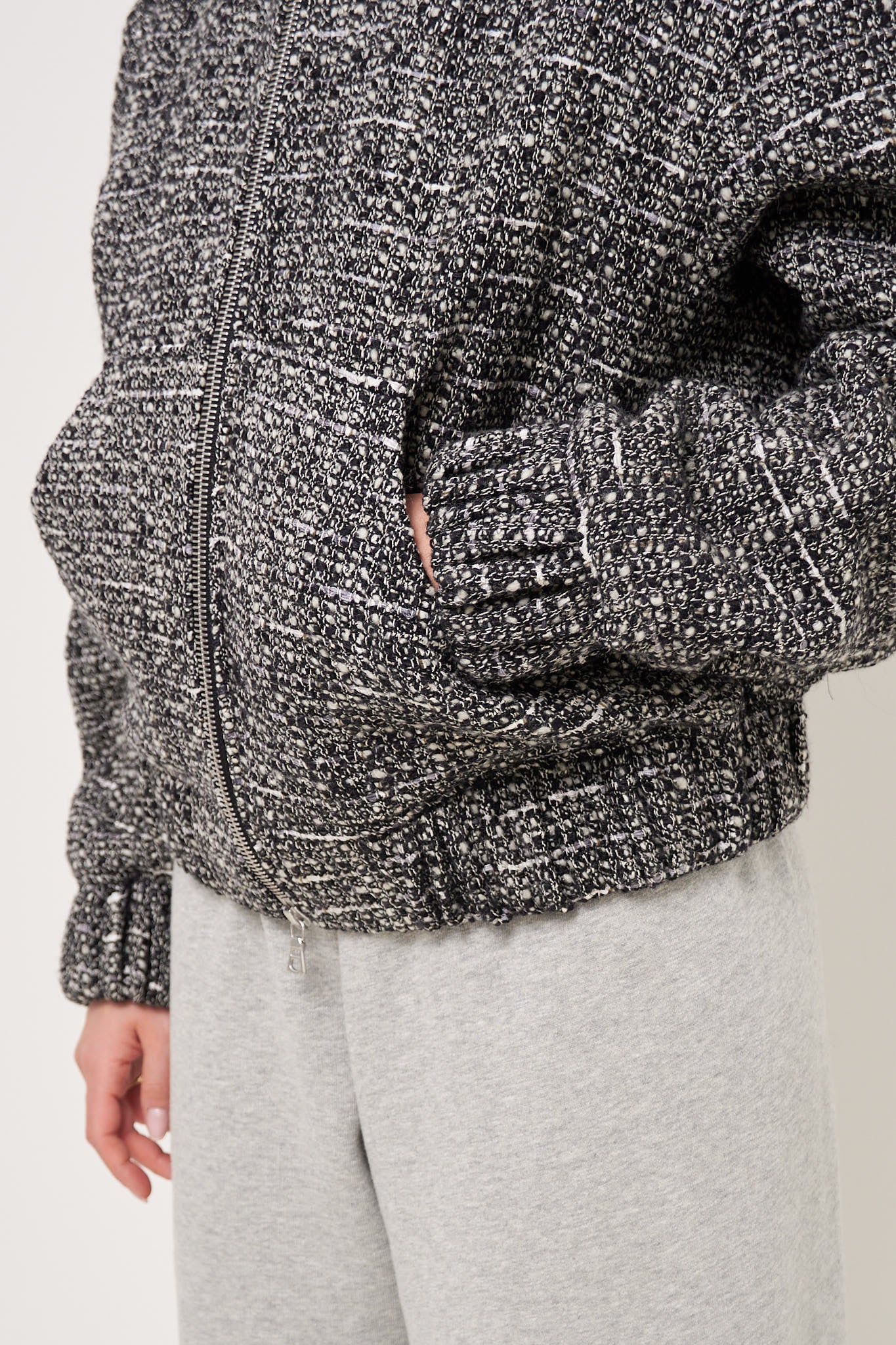 Bouclé Hooded Zip-Up Jacket Salt/Pepper