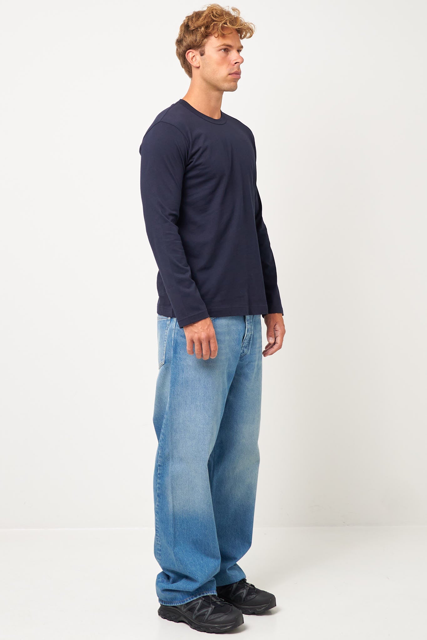 CDG Forever L/S T-Shirt Navy from Comme des Garçons SHIRT. This long-sleeved t-shirt is made of cotton. It is designed with a regular fit, a round neckline and long sleeves. The t-shirt has a printed Comme des Garçons SHIRT logo at the top of the back.