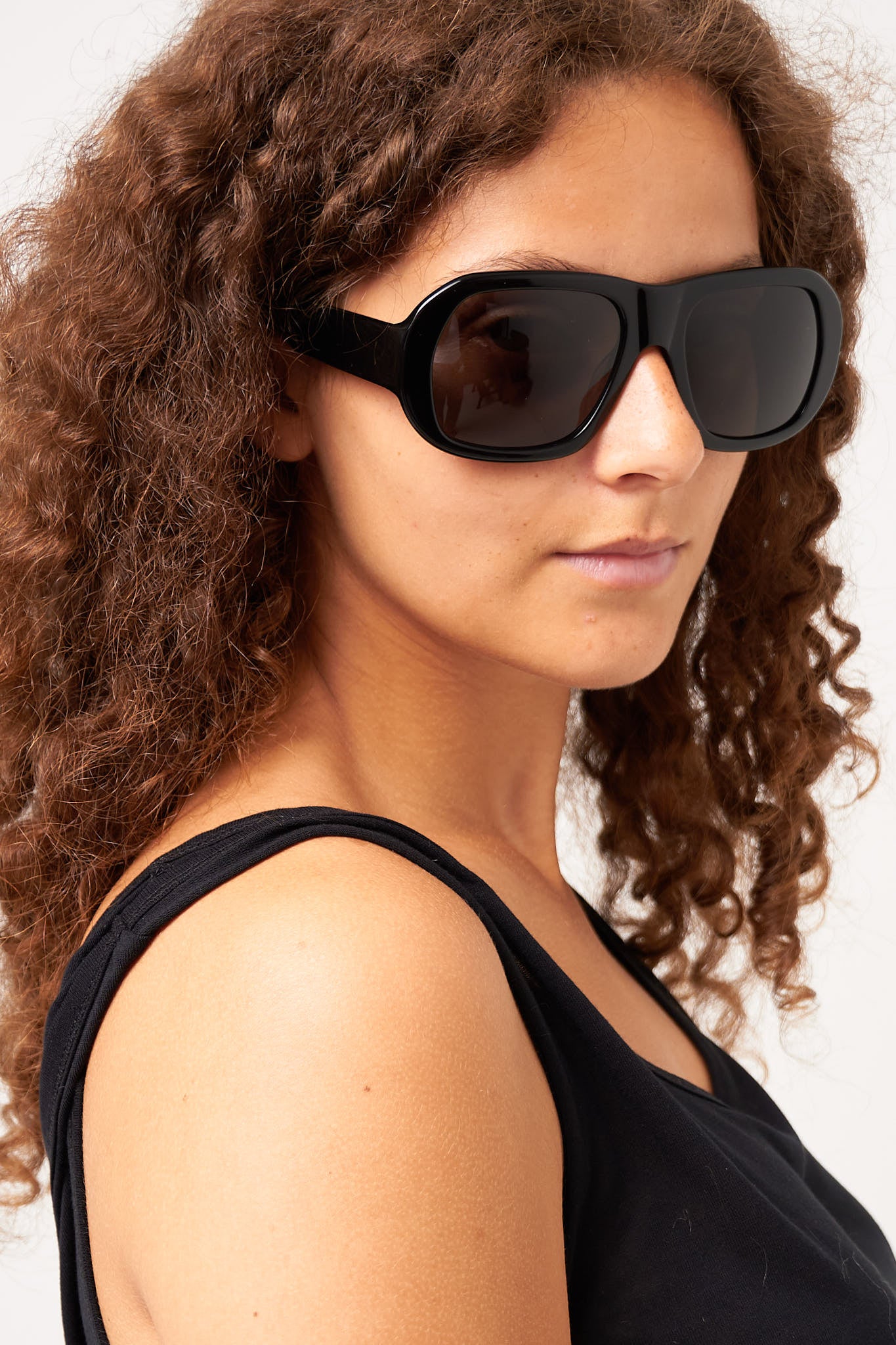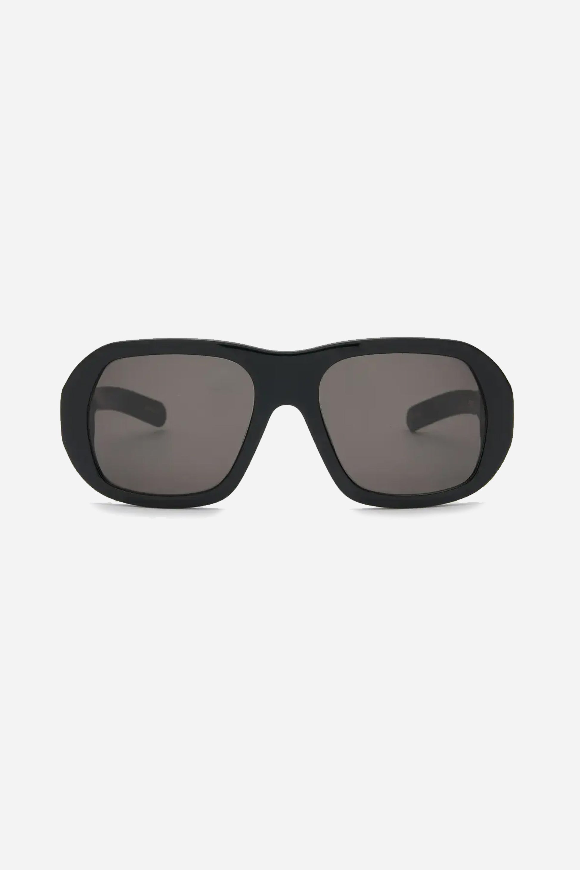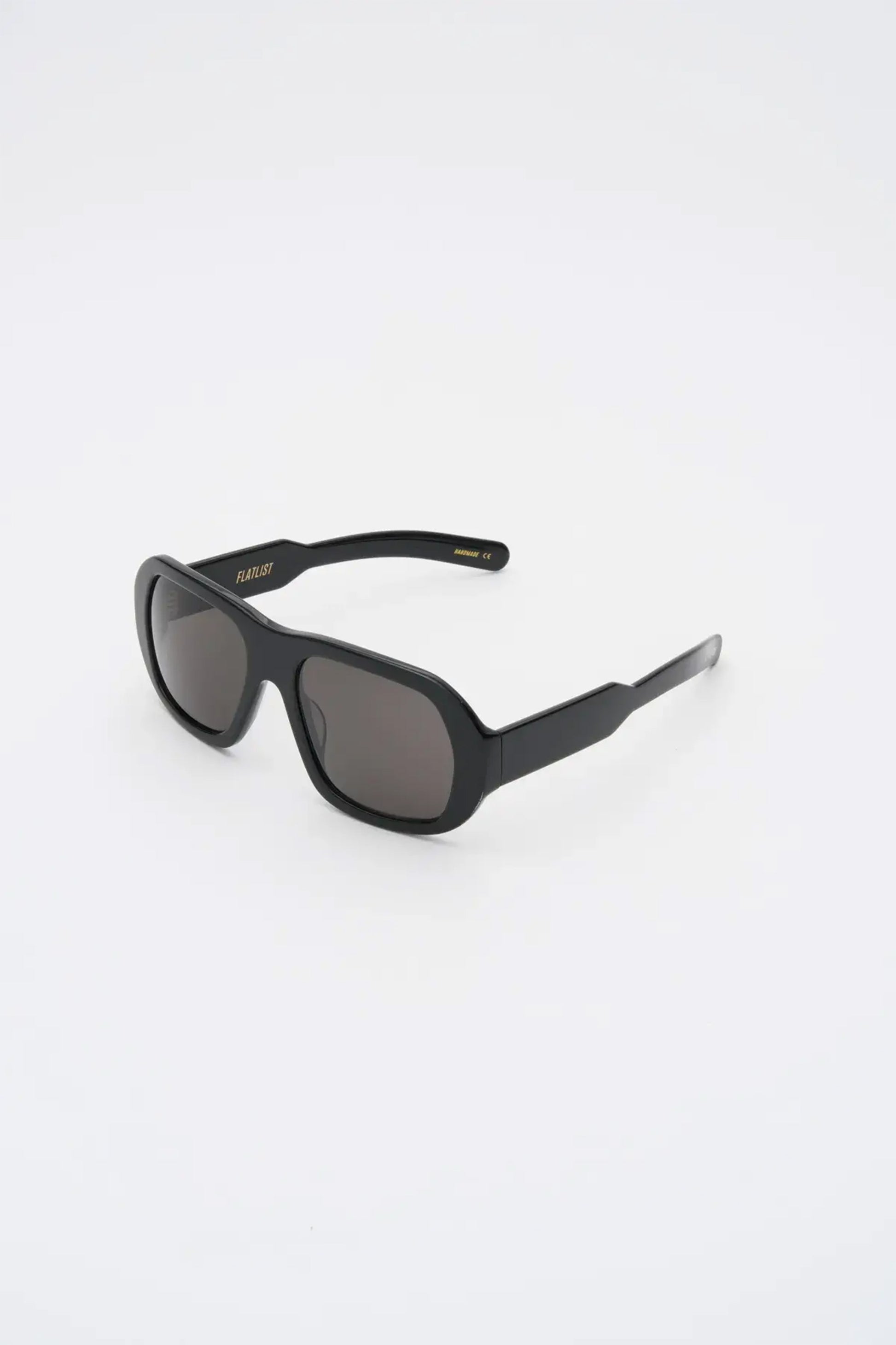 Ford Solid Black/Solid Black Lens from Flatlist Eyewear. The sunglasses are made of handmade acetate. They have scratch-free lenses with 100% UVA/UVB protection and come in a box with case and microfiber cloth.