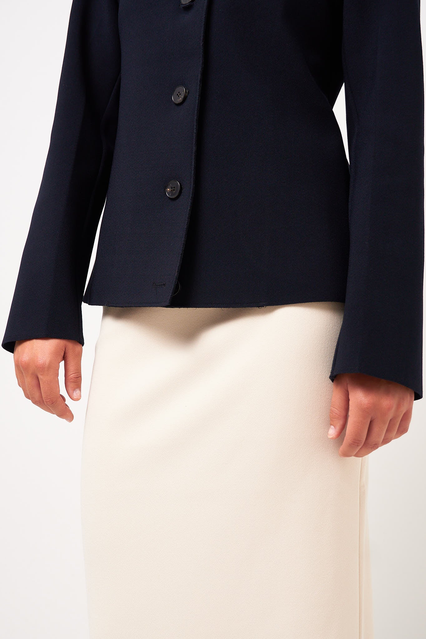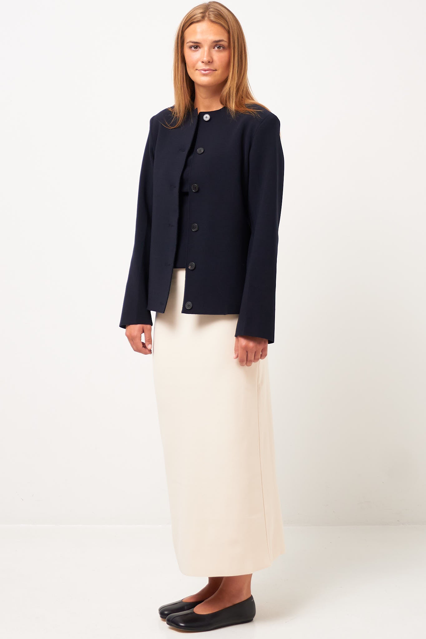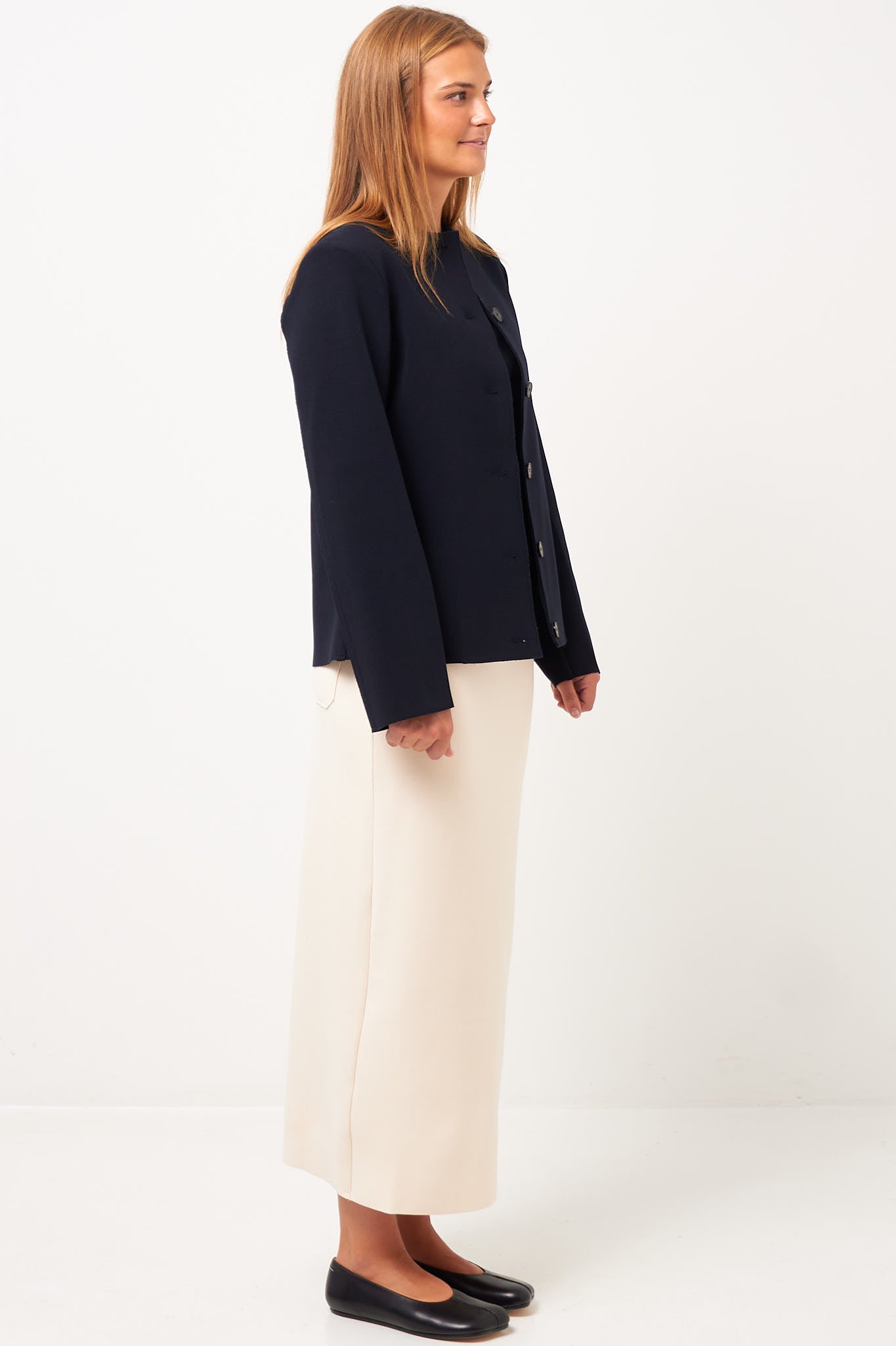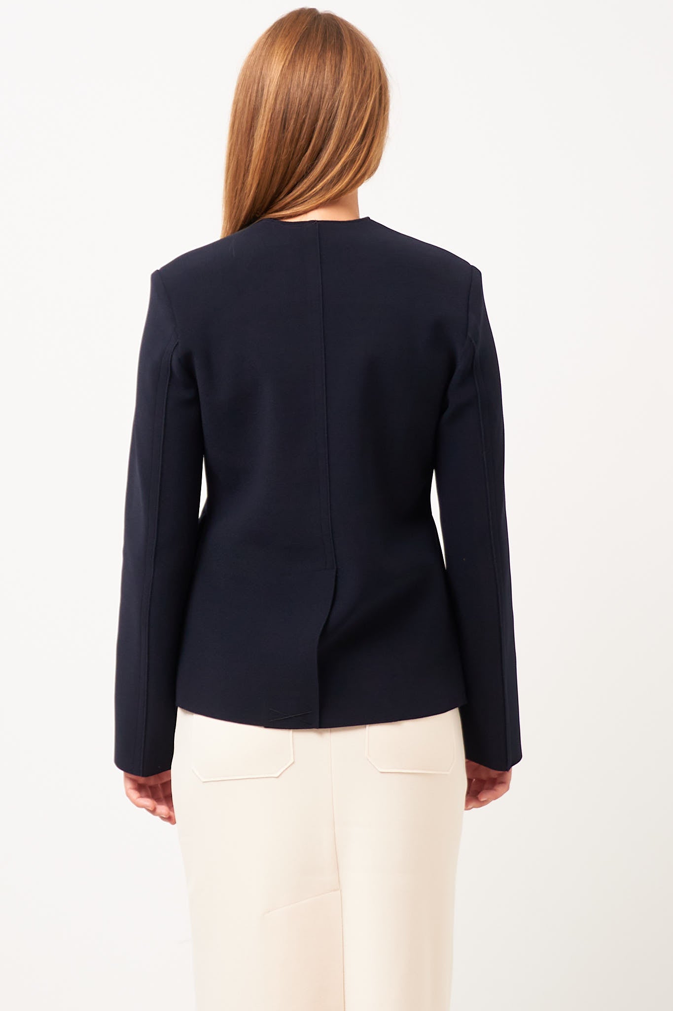 Lay3 Blazer Ink from BIRROT. This jacket is made from a heavy polyester blend. It has a regular fit, with a round neckline. The jacket has invisible side pockets and closes with buttons at the front.