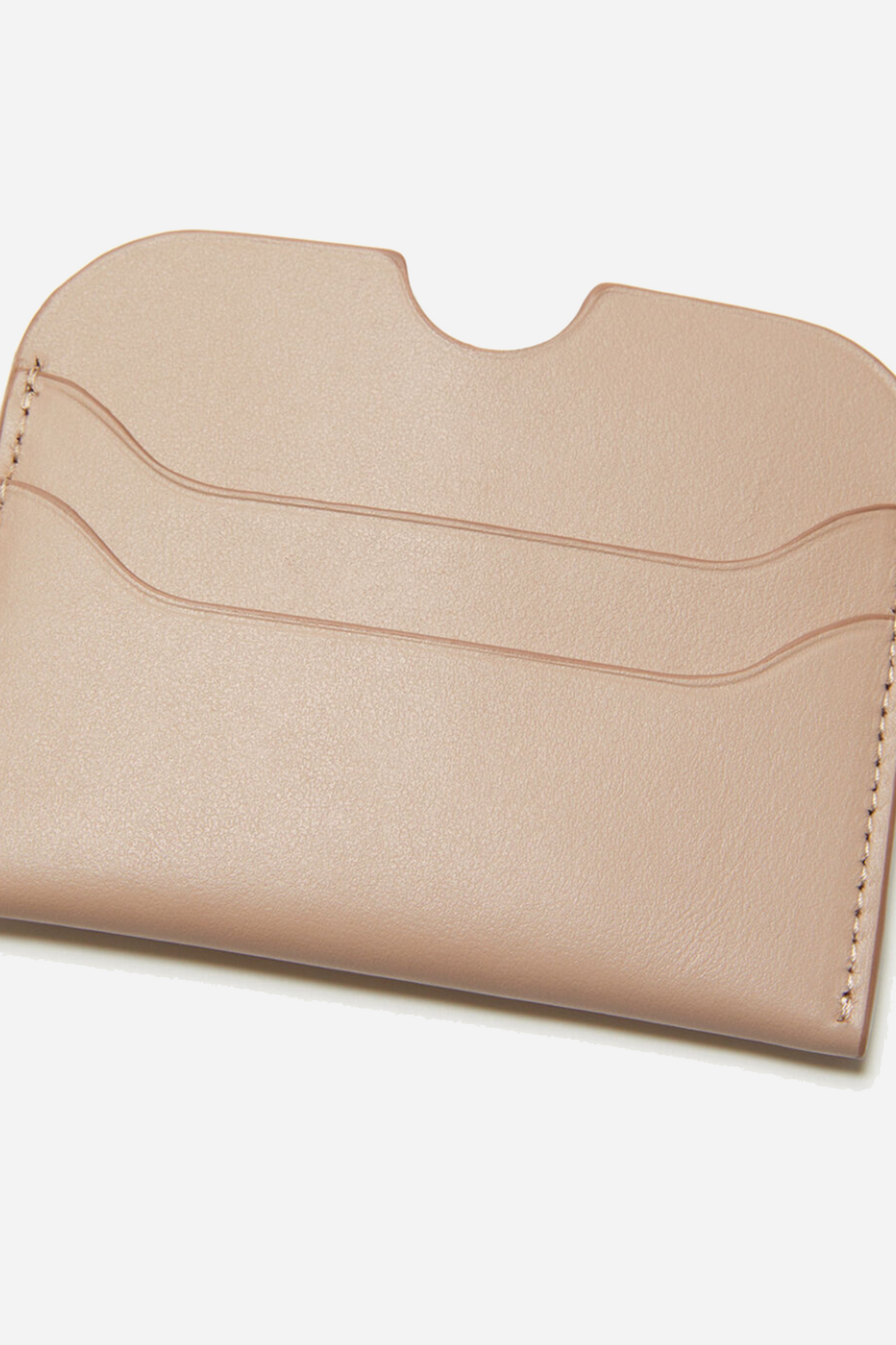 Leather Card Holder Taupe beige from Acne Studios. This card holder is made from soft core leather with room for a minimum of 5 cards and a silver Acne Studios 3D logo printed on the front.
