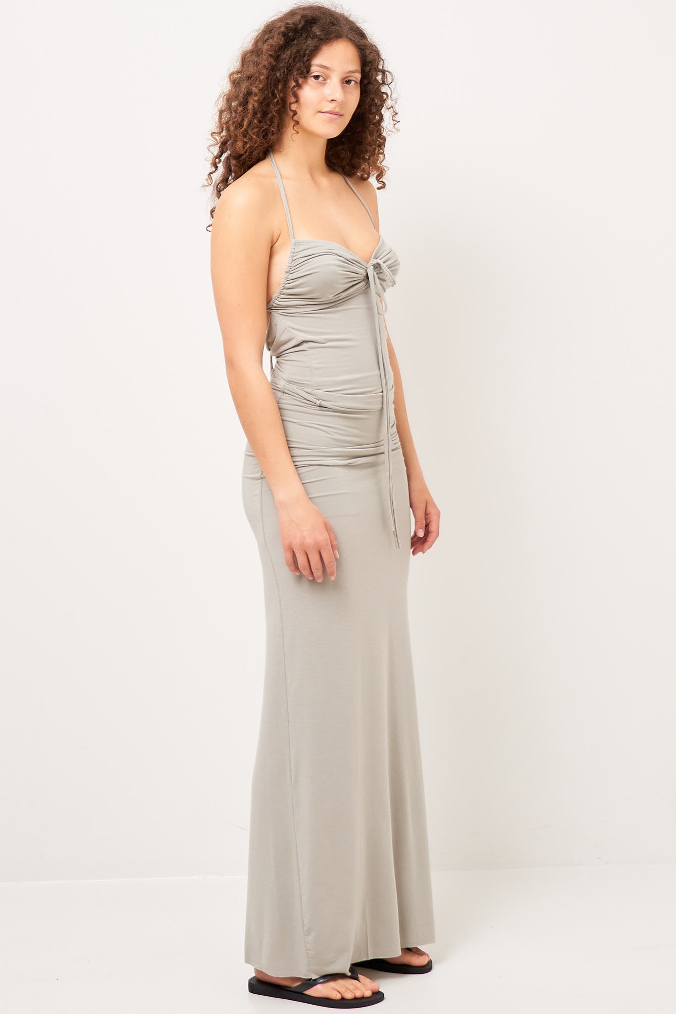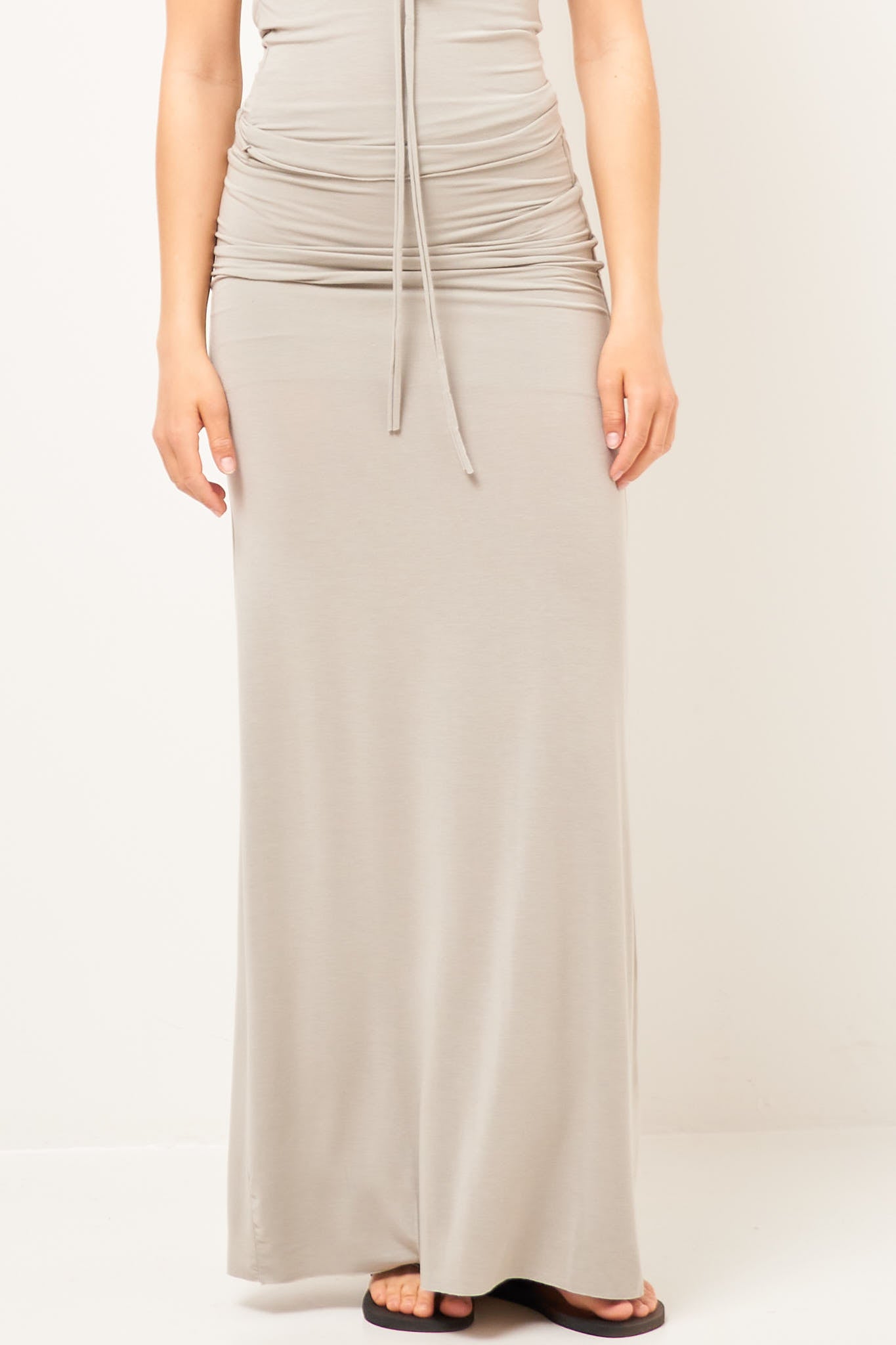 Long Skirt Smoke Grey from gabi gamel. This skirt is made of a stretchy viscose blend. It is designed with raw lengths and can be worn as both a dress and a skirt.