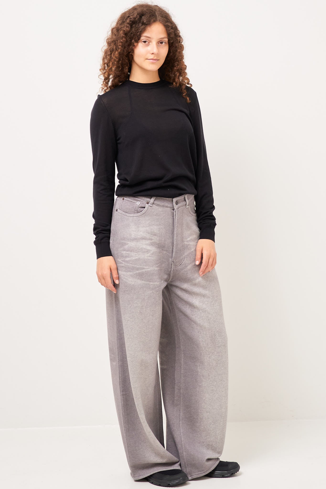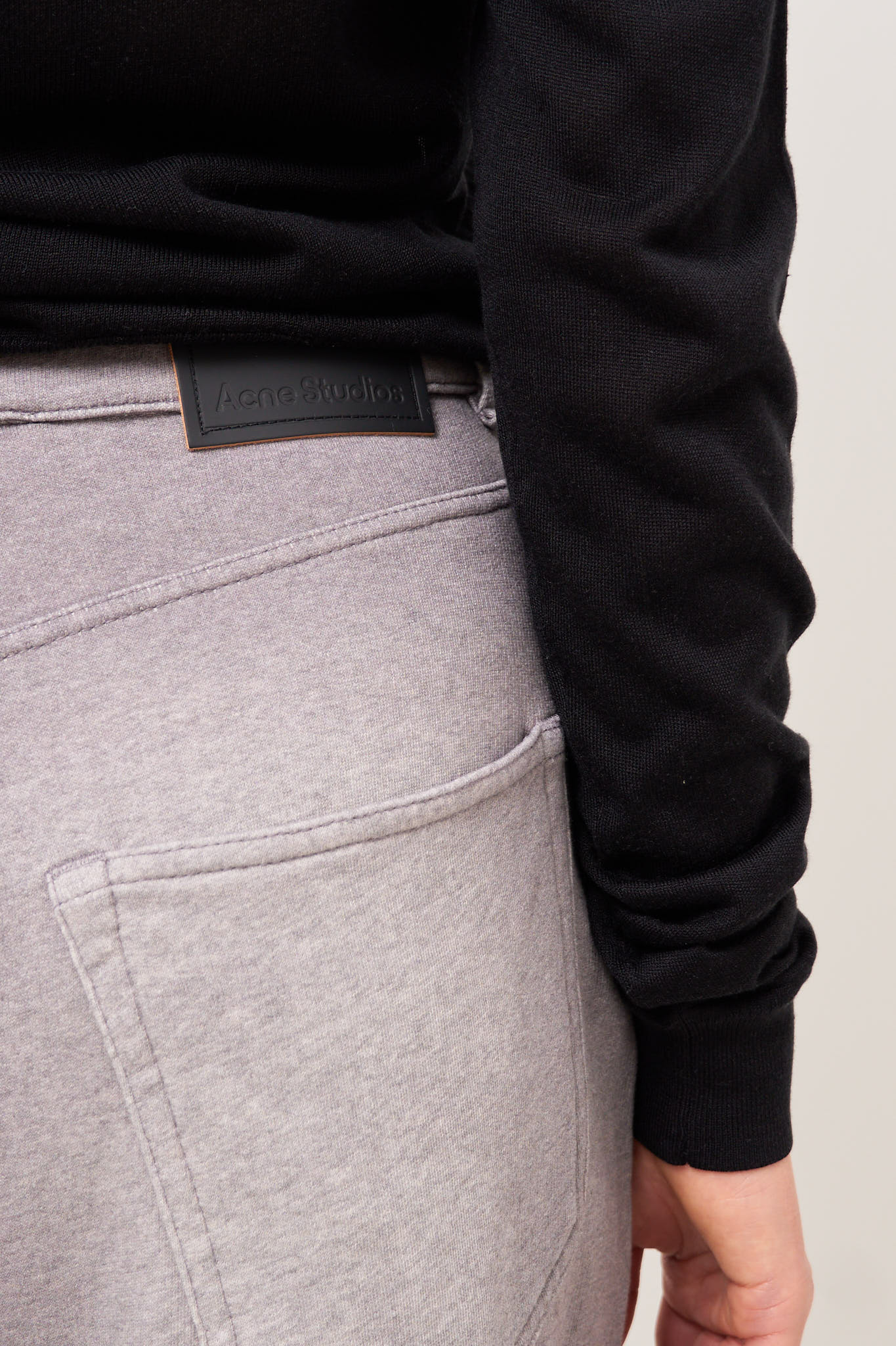 Loose Fit Trousers Grey Melange from Acne Studios. These trousers are made from a soft cotton with a sweatpant look. They have a loose fit with belt loops and an Acne Studios logo on the back.