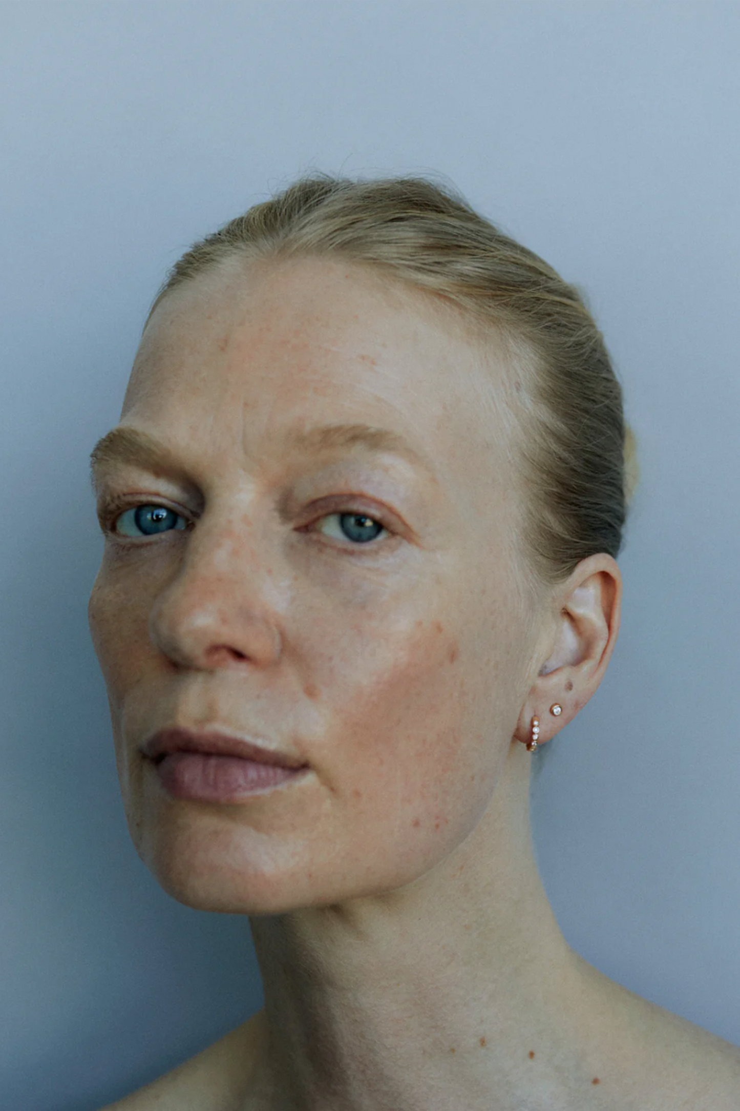 Oda Mini Hoop Gold from Ragbag. This earring is made of sterling silver and coated with 18 carat gold plating. It is designed with CZ stones around the ear. The earring comes with an invisible clasp.