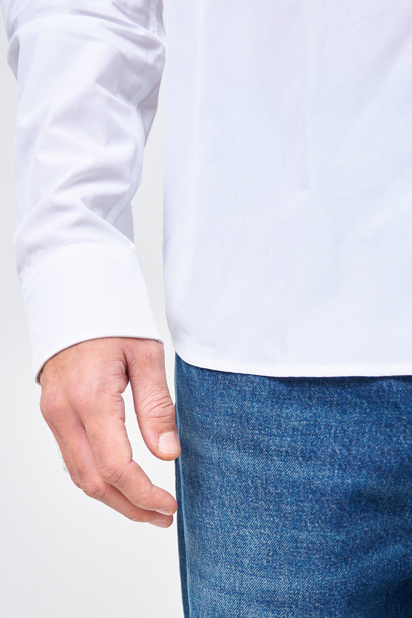 Owen Shirt White from APC This shirt is made from a cotton poplin. The shirt is designed in a regular fit with a single chest pocket.