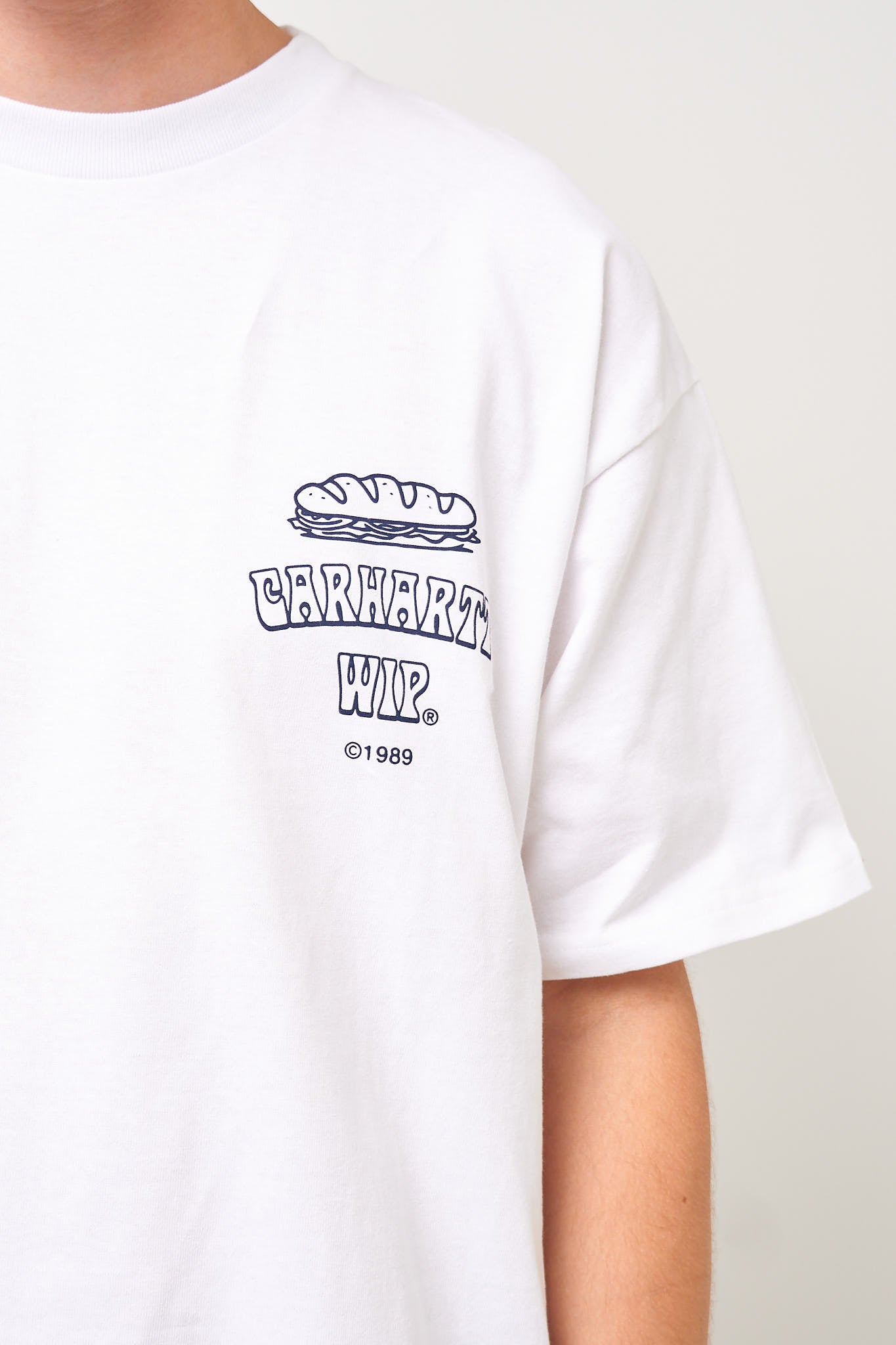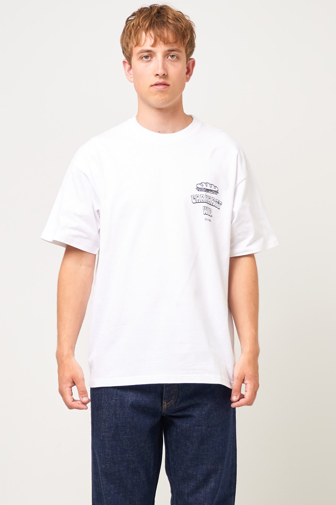 Sandwich T-Shirt White from Carhartt WIP. This t-shirt is made of soft cotton. It is designed with a larger print on the back and on the left chest.