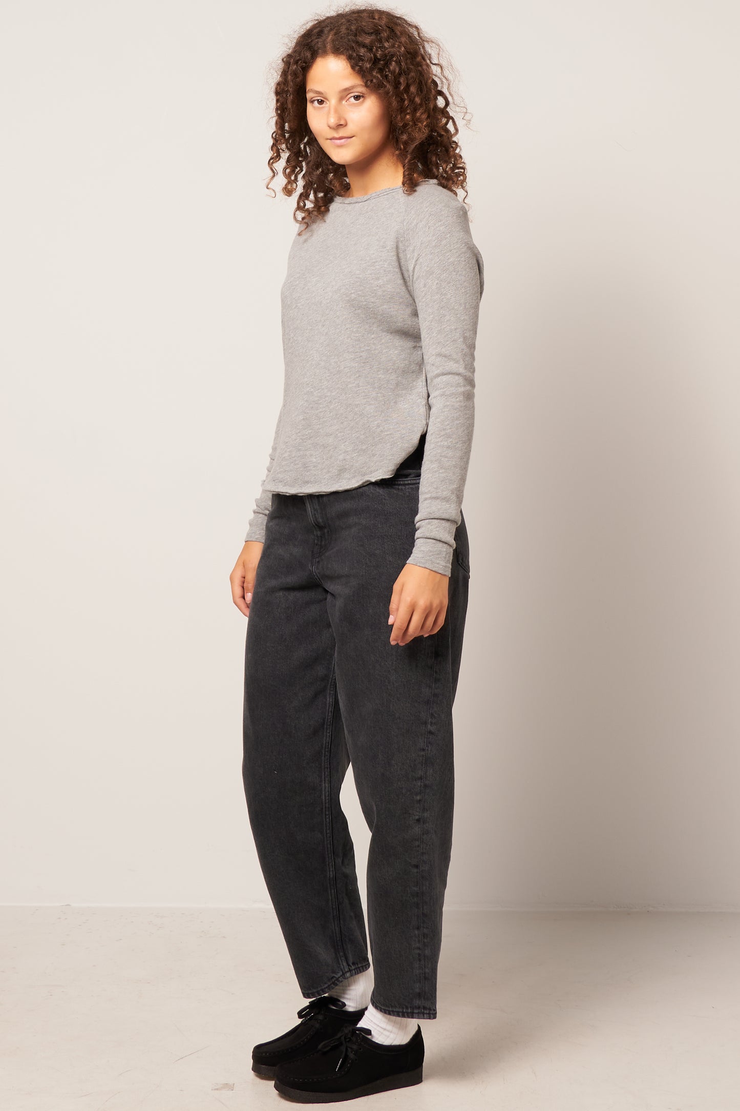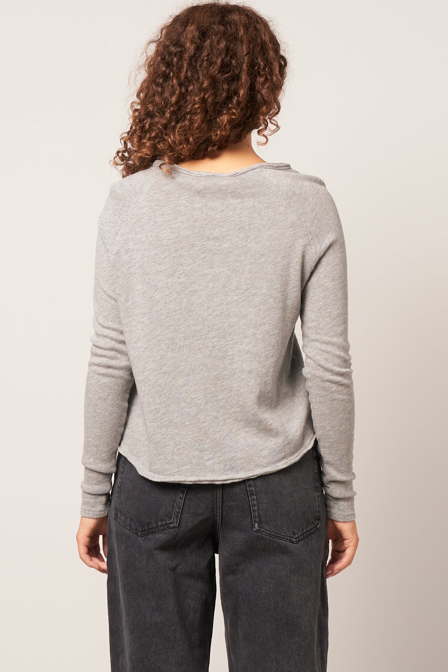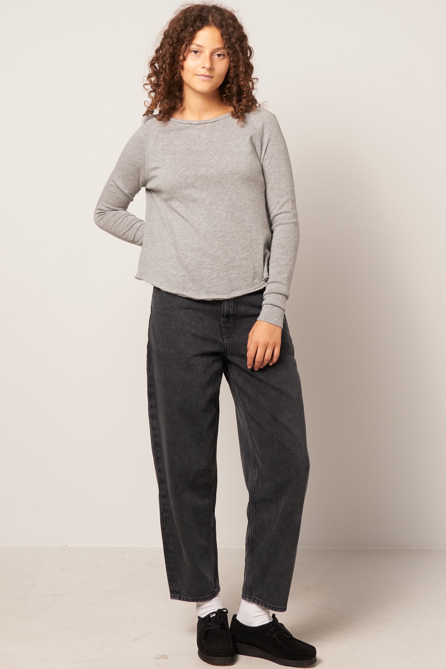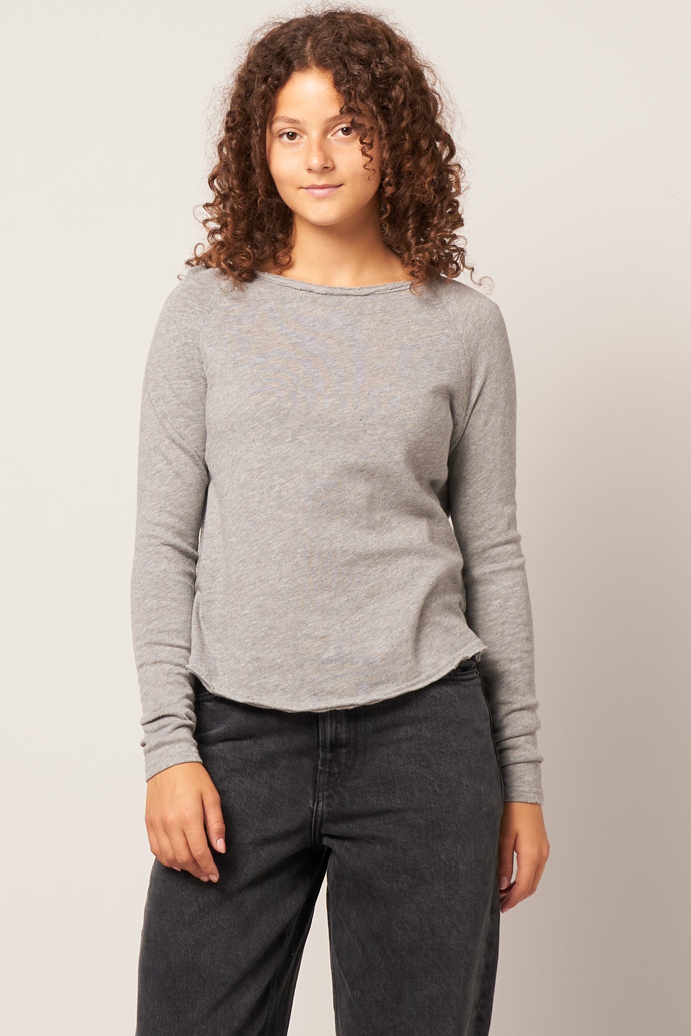 Sonoma L/S T-shirt Heather Grey from American Vintage. This t-shirt has a relaxed fit. Made from pure cotton, it is designed with a wide crew neckline, long sleeves and raw edges at the neckline, cuffs and hem.