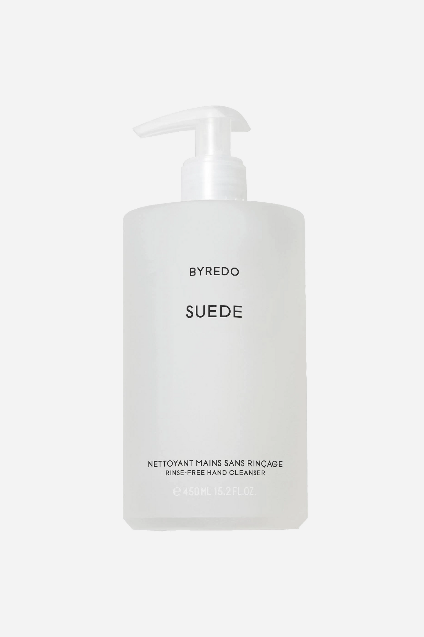 Suede Rinse-Free Hand Cleansers from Byredo. This hand soap cleanses and moisturizes. Hands contains fragrance notes such as Bergamot, Lily of the Valley and Crisp Amber. Use it together with Suede Hand Lotion and Suede Hand Wash.