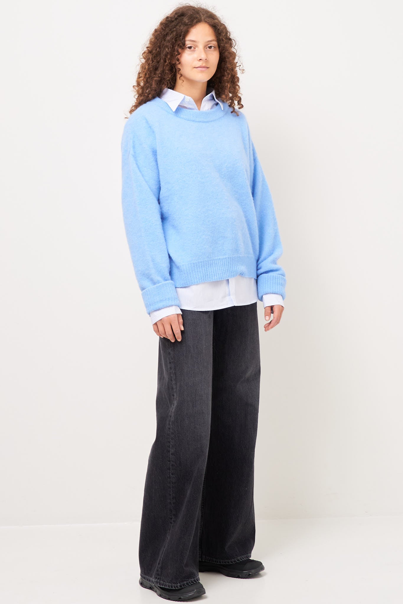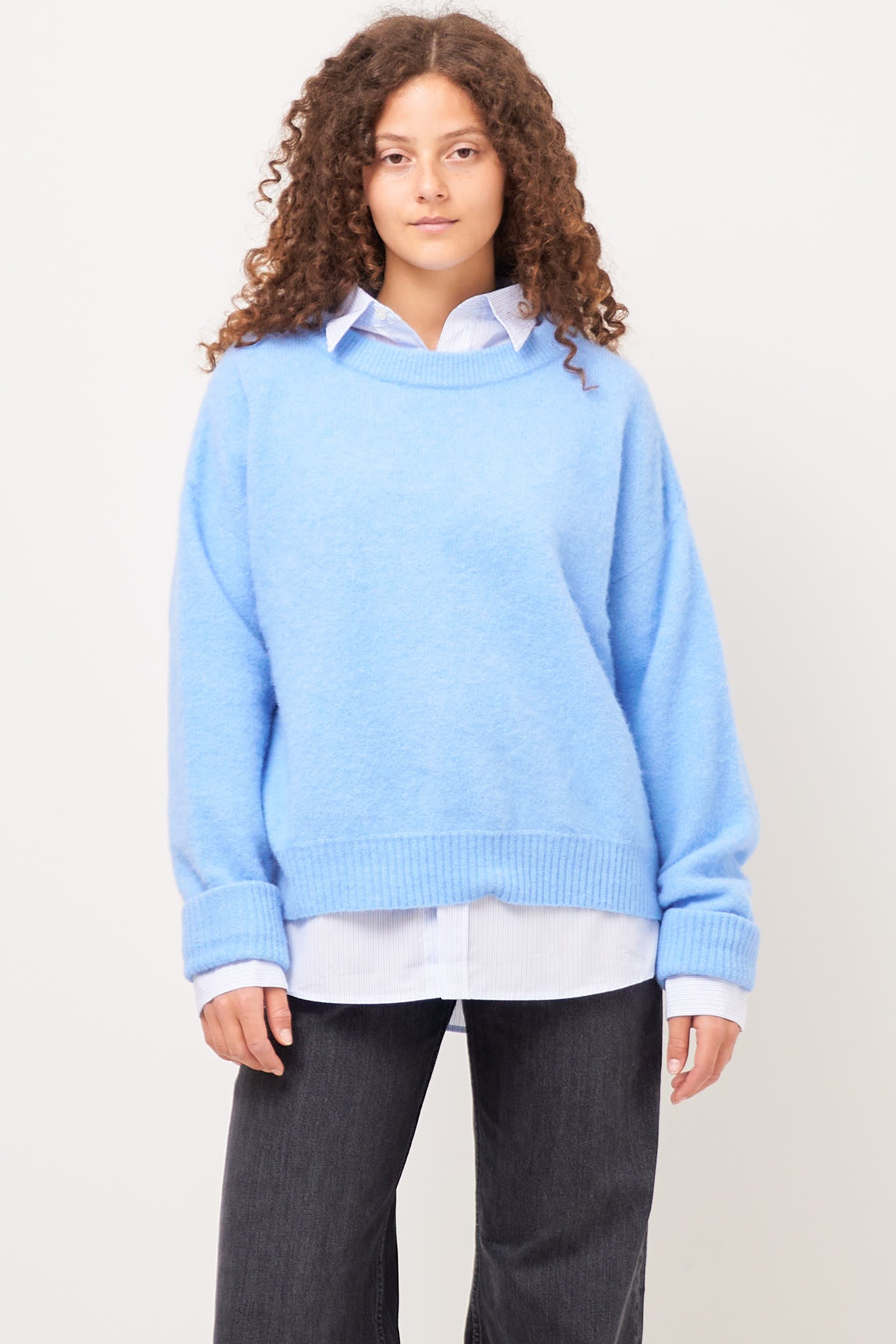 Vitow Sweater Atmosphere Melange from American Vintage. This knit is made from an alpaca and wool blend. It has a relaxed fit with a round neckline and ribbed edges.
